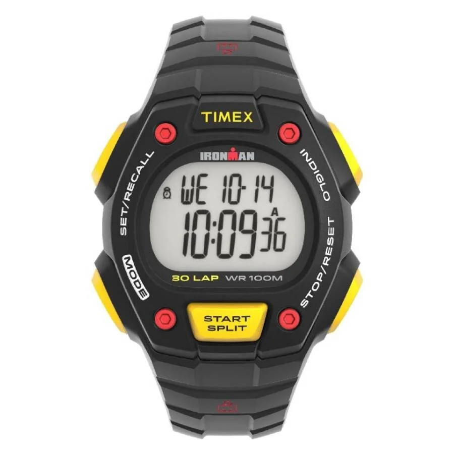 Black resin case and strap. Fixed black resin bezel. Digital dial. Dial Type: digital. Quartz movement. Scratch resistant acrylic crystal. Pull / push crown. Solid case back. Round case shape, case size: 40 mm. Buckle clasp. Water resistant at 100 meters / 330 feet. Functions: date, day, hour, minute, second. Ironman Classic Series. Sport watch style. Timex Ironman Classic Quartz Digital Men's Watch TW5M58900. GENERAL Box Type: Original Box CASE Case Diameter: 40 mm Case Material: Resin Case Shape: Round Case Back: Solid BAND Band Material: Resin Band Type: Strap Band Color: Black Clasp: Buckle DIAL Dial Color: Digital Type: Digital Crystal: Acrylic Bezel: Fixed Bezel Color: Black Bezel Material: Resin Crown: Pull / Push INFORMATION Brand: Timex Series: Ironman Classic Collection Name: Ironman Classic Gender: Mens Model: TW5M58900 Movement: Quartz FEATURES Water Resistance: 100 meters / 330 feet Functions: Date, Day, Hour, Minute, Second Watch Features: Digital ADDITIONAL INFO Watch Style: Sport Warranty: 1 Year Jomashop Warranty UPC Code: 194366326635 Jomashop Sku: TXTW5M58900 Department: Watches