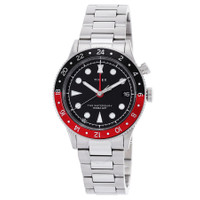 Silver-tone stainless steel case and bracelet. Bi-directional rotating black and red stainless steel bezel. Black dial with silver-tone hands and index hour markers. Minute markers around the outer rim. Dial Type: Analog. Date display at the 3 o'clock position. Quartz movement. Scratch resistant mineral crystal. Solid case back. Round case shape, case size: 39 mm, case thickness: 11.5 mm. Band width: 20 mm. Fold over clasp. Water resistant at 100 meters / 330 feet. Functions: GMT, second time zone, date, hour, minute, second. Waterbury Series. Sport watch style. Item Variations: TW2W22700VQ. Timex Waterbury Traditional GMT Quartz Black Dial Men's Watch TW2W22700. GENERAL Box Type: Original Box CASE Case Size: 39 Case Thickness: 11.5 mm Case Material: Stainless Steel Case Shape: Round Case Back: Solid BAND Band Material: Stainless Steel Band Type: Bracelet Band Color: Silver-tone Band Width: 20 mm Clasp: Fold Over DIAL Dial Color: Black Type: Analog Crystal: Scratch Resistant Mineral Hands: Silver-tone Dial Markers: Index Second Markers: Minute Markers around the outer rim Bezel: Bi-directional Rotating Bezel Color: Black and Red Bezel Material: Stainless Steel INFORMATION Brand: Timex Series: Waterbury Collection Name: Waterbury Gender: Mens Model: TW2W22700VQ Movement: Quartz FEATURES Water Resistance: 100 meters / 330 feet Calendar: Date display at the 3 o'clock position Functions: GMT, Second Time Zone, Date, Hour, Minute, Second Watch Features: Analog, GMT, Stainless Steel, Time Zone ADDITIONAL INFO Watch Style: Sport Warranty: 1 Year Jomashop Warranty UPC Code: 194366292558 Jomashop Sku: TXTW2W22700 Item Variation: TW2W22700VQ Department: Watches