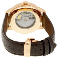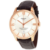 Rose gold PVD stainless steel case with a brown leather strap. Fixed rose gold PVD bezel. Silver dial with rose gold-tone alpha-style hands and index hour markers. Roman numerals mark the 3, 6, 9 and 12 o'clock positions. Minute markers around an inner ring. Dial Type: Analog. Date display at the 6 o'clock position. Tissot calibre Powermatic 80 (C07.111) automatic movement, based upon ETA 2824-2, containing 23 Jewels, bitting at 21600 vph, and has a power reserve of approximately 80 hours. Scratch resistant sapphire crystal. Pull / push crown. Transparent case back. Round case shape. Case size: 42 mm. Case thickness: 10.89 mm. Band width: 20 mm. Band length: 7.75 inches. Fold over clasp. Water resistant at 50 meters / 165 feet. Functions: date, hour, minute, second. Chemin Des Tourelles Series. Dress watch style. Watch label: Swiss Made. Tissot Chemin Des Tourelles Automatic Men's Watch T099.408.36.038.00. INFORMATION Brand: Tissot Series: Chemin Des Tourelles Collection Name: Chemin Des Tourelles Gender: Mens Model: T099.408.36.038.00 Watch Label: Swiss Made Movement: Automatic Engine: Tissot Calibre Powermatic 80 (C07.111) Power Reserve: 80 hours CASE Case Size: 42 mm Case Thickness: 10.89 mm Case Material: Stainless Steel Case Shape: Round Case Back: Transparent BAND Band Material: Leather Band Type: Strap Band Color: Brown Band Length: 7.75 inches Band Width: 20 mm Clasp: Fold Over DIAL Dial Color: Silver Type: Analog Crystal: Scratch Resistant Sapphire Hands: Rose Gold-tone Alpha-style Dial Markers: Index Second Markers: Roman Numerals mark the 3, 6, 9 and 12 o'clock positions. Minute Markers around an inner ring Bezel: Fixed Bezel Color: Rose Gold PVD Bezel Material: Stainless Steel Crown: Pull / Push FEATURES Water Resistance: 50 meters / 165 feet Calendar: Date display at the 6 o'clock position Functions: Date, Hour, Minute, Second Watch Features: Stainless Steel, Leather, Gold, Analog ADDITIONAL INFO Watch Style: Dress Warranty: 2 Year Jomashop Warranty UPC Code: 7611608272862 Jomashop Sku: TIST0994083603800 Department: Watches Category: Watches