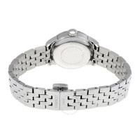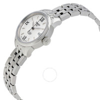 Silver-tone stainless steel case and bracelet. Fixed silver-tone stainless steel bezel. Silver dial with silver-tone leaf-style hands and index hour markers. Roman numerals mark the 3, 6, 9 and 12 o'clock positions, minute markers around the outer rim. Dial Type: Analog. Date display at the 3 o'clock position. ETA Caliber 2671 Automatic movement, containing 25 Jewels, bitting at 28800 vph, and has a power reserve of approximately 38 hours. Scratch resistant sapphire crystal. Pull / push crown. Solid case back. Round case shape, case size: 25 mm, case thickness: 9 mm. Band width: 12 mm, band length: ladies standard. Fold over clasp with a push button release. Water resistant at 30 meters / 100 feet. Functions: date, hour, minute, second. Le Locle Series. Sport watch style. Watch label: Swiss Made. Item Variations: T41118333. Tissot Le Locle Automatic Silver Dial Ladies Watch T41.1.183.33. GENERAL Color: Silver INFORMATION Brand: Tissot Series: Le Locle Collection Name: Le Locle Gender: Womens Model: T41.1.183.33 Watch Label: Swiss Made Movement: Automatic Engine: ETA Caliber 2671 Power Reserve: 38 hours CASE Case Size: 25 mm Case Thickness: 9 mm Case Color: Silver-Tone Case Material: Stainless Steel Case Shape: Round Case Back: Solid BAND Band Material: Stainless Steel Band Type: Bracelet Band Color: Silver-tone Band Length: Ladies Standard Band Width: 12 mm Clasp: Fold Over with Push Button Release DIAL Dial Color: Silver Type: Analog Crystal: Scratch Resistant Sapphire Hands: Silver-tone Leaf-style Dial Markers: Index Second Markers: Roman Numerals mark the 3, 6, 9 and 12 o'clock positions, Minute Markers around the outer rim Luminiscence: Hands and Dial Markers Bezel: Fixed Bezel Color: Silver-tone Bezel Material: Stainless Steel Crown: Pull / Push FEATURES Water Resistance: 30 meters / 100 feet Calendar: Date display at the 3 o'clock position Functions: Date, Hour, Minute, Second Watch Features: Stainless Steel, Analog ADDITIONAL INFO Watch Style: Sport Warranty: 2 Year Jomashop Warranty UPC Code: 7611608219829 Jomashop Sku: TIST41118333 Item Variation: T41118333 Department: Watches Category: Watches