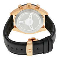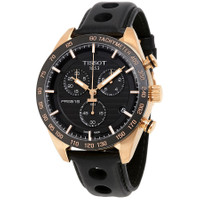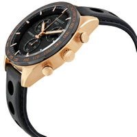 Rose gold PVD stainless steel case with a black leather strap. Fixed black ceramic bezel showing tachymeter markings. Black dial with luminous gold-tone hands and index hour markers. Minute markers around the outer rim. Dial Type: Analog. Luminescent hands and markers. Date display at the 4 o'clock position. Chronograph - three sub-dials displaying: 60 second, 30 minute and 1/10th of a second. ETA caliber G10.212 quartz movement. Scratch resistant sapphire crystal. Pull / push crown. Solid case back. Case size: 42 mm. Case thickness: 12.12 mm. Round case shape. Band width: 20 mm. Butterfly clasp. Water resistant at 100 meters / 330 feet. Functions: chronograph, date, hour, minute, second, tachymeter. Additional Info: suitable for snorkeling as well as swimming but not diving. Sport watch style. Watch label: Swiss Made. Tissot PRS 516 Chronograph Black Dial Men's Watch T1004173605100. GENERAL Box Type: Original Box CASE Case Diameter: 42 mm Case Thickness: 12.12 mm Case Material: Stainless Steel Case Shape: Round Case Back: Solid BAND Band Material: Leather Band Type: Strap Band Color: Black Band Length: 7.75 inches Band Width: 20 mm Clasp: Butterfly DIAL Dial Color: Black Type: Analog Crystal: Scratch Resistant Sapphire Hands: Luminous Gold-tone Dial Markers: Index Second Markers: Minute Markers around the outer rim Sub Dials: Three - 60 Second, 30 Minute and 1/10th of a Second Luminiscence: Hands and Markers Bezel: Fixed Bezel Color: Black Bezel Material: Ceramic showing Tachymeter Markings Crown: Pull / Push INFORMATION Brand: Tissot Series: Prs 516 Collection Name: PRS 516 Gender: Mens Model: T100.417.36.051.00 Watch Label: Swiss Made Movement: Quartz Engine: ETA Caliber G10.212 FEATURES Water Resistance: 100 meters / 330 feet Calendar: Date display at the 4 o'clock position Functions: Chronograph, Rattrapante, Date, Hour, Minute, Small Second Watch Features: Analog, Rattrapante, Ceramic, Gold, Leather, Stainless Steel, Chronograph ADDITIONAL INFO Watch Style: Sport Warranty: 2 Year Jomashop Warranty UPC Code: 7611608275207 Additional Info: suitable for snorkeling as well as swimming but not diving Jomashop Sku: TIST1004173605100 Department: Watches Category: Watches