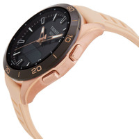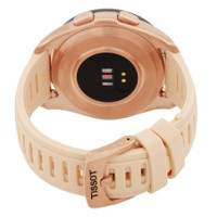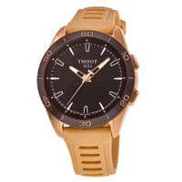 Rose gold-tone titanium case with a nude silicone strap. Fixed ceramic bezel. Black dial with rose gold-tone hands and index hour markers. Minute markers around the outer rim. Dial Type: Analog. Quartz movement. Scratch resistant sapphire crystal. Pull / push crown. Solid case back. Round case shape, case size: 43.75 mm, case thickness: 13.47 mm. Band width: 21 mm. Buckle clasp. Water resistant at 50 meters / 165 feet. Functions: date, day, hour, minute, second, perpetual calendar, alarm, timer, chrono split, chrono lap, chrono log book, step counter, calories burned, distance travelled, speed, pace, heart rate, altitude gain, altitude, notifications. T-touch Connect Sport Series. Sport watch style. Watch label: Swiss Made. Tissot T-Touch Connect Quartz Black Dial Men's Watch T1534204705105. GENERAL Box Type: Original Box CASE Case Thickness: 13.47 mm Case Material: Titanium Case Shape: Round Case Back: Solid BAND Band Material: Silicone Band Type: Strap Band Color: Nude Band Width: 21 mm Clasp: Buckle DIAL Dial Color: Black Type: Analog Crystal: Scratch Resistant Sapphire Hands: Rose Gold-tone Dial Markers: Index Second Markers: Minute Markers around the outer rim Bezel: Fixed Bezel Material: Ceramic Crown: Pull / Push INFORMATION Brand: Tissot Series: T-Touch Connect Sport Collection Name: T-Touch Connect Sport Gender: Mens Model: T1534204705105 Watch Label: Swiss Made Movement: Quartz FEATURES Water Resistance: 50 meters / 165 feet Functions: Date, Day, Hour, Minute, Second, Perpetual calendar, Alarm, Timer, Chrono split, Chrono lap, Chrono log book, Step counter, Calories burned, Distance travelled, speed, pace, heart rate, altitude gain, altitude, Notifications Watch Features: Analog, Perpetual, Ceramic, Gold, Titanium, Heart Rate Monitor, Alarm ADDITIONAL INFO Watch Style: Sport Warranty: 2 Year Jomashop Warranty Jomashop Sku: TIST1534204705105 Department: Watches