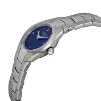 Stainless steel case with a stainless steel bracelet. Fixed stainless steel bezel. Blue mother of pearl dial with silver-tone hands. Index markers at the 3, 9 and 12 o'clock positions. Dial Type: Analog. Date display at the 6 o'clock position. ETA Caliber F03.111 quartz movement. Scratch resistant sapphire crystal. Pull / push crown. Solid case back. Case size: 25.9 mm. Case thickness: 6.25 mm. Round case shape. Butterfly clasp. Water resistant at 50 meters / 165 feet. Functions: date, hour, minute. Dress watch style. Watch label: Swiss Made. Tissot T Trend T Round Blue Dial Ladies Watch T0960091113100. INFORMATION Brand: Tissot Series: T-Round Collection Name: T-Round Gender: Womens Model: T096.009.11.131.00 Watch Label: Swiss Made Movement: Quartz Engine: ETA Caliber F03.111 CASE Case Size: 25.9 mm Case Thickness: 6.25 mm Case Material: Stainless Steel Case Shape: Round Case Back: Solid BAND Band Material: Stainless Steel Band Type: Bracelet Band Color: Silver-tone Clasp: Butterfly DIAL Dial Color: Blue Mother of Pearl Type: Analog Crystal: Scratch Resistant Sapphire Hands: Silver-tone Dial Markers: Index Second Markers: Index Markers at the 3, 9 and 12 o'clock positions Bezel: Fixed Bezel Color: Silver-tone Bezel Material: Stainless Steel Crown: Pull / Push FEATURES Water Resistance: 50 meters / 165 feet Calendar: Date display at the 6 o'clock position Functions: Date, Hour, Minute Watch Features: Stainless Steel, Analog ADDITIONAL INFO Watch Style: Dress Warranty: 2 Year Jomashop Warranty UPC Code: 7611608268384 Jomashop Sku: TIST0960091113100 Department: Watches Category: Watches