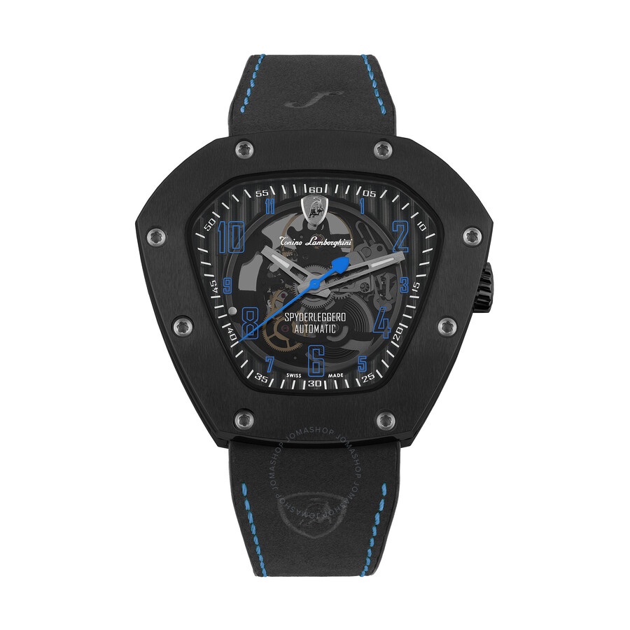 Black titanium case with a black rubber strap. Fixed black titanium bezel. Multi-color dial with black hands and Arabic numeral hour markers. Minute markers around the outer rim. Dial Type: Analog. Luminescent hands and markers. Sellita Caliber SW200-1 Automatic movement, containing 26 Jewels, bitting at 28800 vph, and has a power reserve of approximately 38 hours. Scratch resistant sapphire crystal. Transparent case back. Unique case shape, case size: 51 mm. Fold over clasp. Water resistant at 100 meters / 330 feet. Functions: hour, minute, second. Spyder Series. Casual watch style. Watch label: Swiss Made. Tonino Lamborghini Spyder Automatic Men's Watch TLF-T06-4. INFORMATION Brand: Tonino Lamborghini Series: Spyder Collection Name: Spyder Gender: Mens Model: TLF-T06-4 Watch Label: Swiss Made Movement: Automatic Engine: Sellita Caliber SW200-1 Power Reserve: 38 hours CASE Case Size: 51 mm Case Material: Titanium Case Shape: Unique Case Back: Transparent BAND Band Material: Rubber Band Type: Strap Band Color: Black Clasp: Fold Over DIAL Dial Color: Multi-Color Type: Analog Crystal: Scratch Resistant Sapphire Hands: Black Dial Markers: Arabic Numeral Second Markers: Minute Markers around the outer rim Luminiscence: Hands and Markers Bezel: Fixed Bezel Color: Black Bezel Material: Titanium FEATURES Water Resistance: 100 meters / 330 feet Functions: Hour, Minute, Second Watch Features: Titanium, Rubber, Analog ADDITIONAL INFO Watch Style: Casual Jomashop Sku: Y-142468 Department: Watches Category: Watches