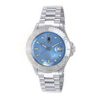 Torino Carrero Men's Avatar Automatic NH35 - 21 JEWELS, Mother of Pearl Aqua Blue DateDial, Silver tone. Silver-tone stainless steel case and bracelet. Uni-directional rotating silver-tone stainless steel bezel. Blue dial with silver-tone hands and index hour markers. Minute markers around the outer rim. Dial Type: Analog. Luminescent hands and markers. Date display at the 3 o'clock position. TMI Caliber NH35 Automatic movement, containing 24 Jewels, bitting at 21600 vph, and has a power reserve of approximately 41 hours. Scratch resistant mineral crystal. Screw down crown. Transparent case back. Round case shape, case size: 44 mm, case thickness: 15 mm. Band width: 21.5 mm, band length: 8.25 inches. Deployment with push button release clasp. Water resistant at 100 meters / 330 feet. Functions: date, hour, minute, second. Catania Series. Casual watch style. Watch label: Japan Movt. Torino Carrero Catania Automatic Blue Dial Men's Watch C1S266BUJ. GENERAL Box Type: Original Box CASE Case Diameter: 44 Case Thickness: 15 mm Case Material: Stainless Steel Case Shape: Round Case Back: Transparent BAND Band Material: Stainless Steel Band Type: Bracelet Band Color: Silver-tone Band Length: 8.25 inches Band Width: 21.5 mm Clasp: Deployment with Push Button Release DIAL Dial Color: Blue Type: Analog Crystal: Scratch Resistant Mineral Hands: Silver-tone Dial Markers: Index Second Markers: Minute Markers around the outer rim Luminiscence: Hands and Markers Bezel: Uni-directional Rotating Bezel Color: Silver-tone Bezel Material: Stainless Steel Crown: Screw Down INFORMATION Brand: Torino Carrero Series: Catania Collection Name: Catania Gender: Mens Model: C1S266BUJ Watch Label: Japan Movt Movement: Automatic Engine: TMI Caliber NH35 Power Reserve: 41 hours FEATURES Water Resistance: 100 meters / 330 feet Calendar: Date Display at the 3 o'clock position Functions: Date, Hour, Minute, Second Watch Features: Stainless Steel, Analog ADDITIONAL INFO Watch Style: Casual Warranty: With Manufacturers Guarantee Jomashop Sku: Y-A4KEQ Department: Watches