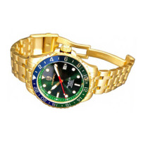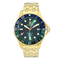 TORINO CARRERO, TIME BOLD- X1 COLLECTION, NH35 AUTOMATIC MOVEMENT, 10 ATM, IP-Gold - BLUE GENERAL Box Type: Original Box CASE Case Thickness: 14 mm Case Material: Stainless Steel Case Shape: Round Case Back: Solid BAND Band Material: Stainless Steel Band Type: Bracelet Band Color: Silver-tone Band Length: 7.25 inches Band Width: 20 mm Clasp: Deployment with Push Button Release DIAL Dial Color: Green Type: Analog Crystal: Scratch Resistant Mineral Dial Markers: Index Second Markers: Minute Scale around the inner rim Luminiscence: Hands and Markers Bezel: Uni-directional Rotating Bezel Color: Multi-Color Bezel Material: Aluminum Crown: Pull / Push INFORMATION Brand: Torino Carrero Series: Time Bold - X1 Collection Name: Time Bold - X1 Gender: Mens Model: C1G737GN-BU Watch Label: Automatic Movement, Japan Made Movement: Automatic Engine: Automatic NH35 - 24 JEWELS FEATURES Water Resistance: 100 meters / 330 feet Calendar: Date Display at the 3 o'clock position Functions: Calendar Watch Features: Gold, Analog ADDITIONAL INFO Watch Style: Casual Warranty: With Manufacturers Guarantee Jomashop Sku: Y-A5VZW Department: Watches