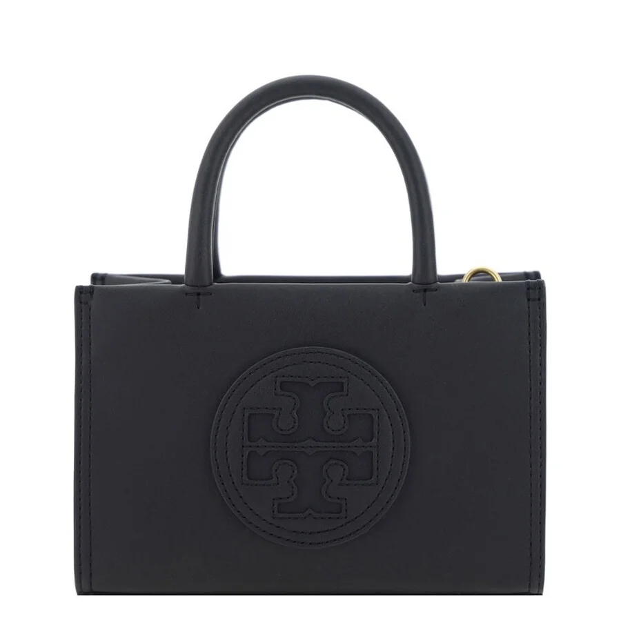 Tory Burch Ladies Tote. SKU: 145613-001. Color: Black. Size: H: 4.9" x L: 7.3" x D: 2.8". Tory Burch Ladies Black Ella Bio Mini Tote Bag. H: 4.9" x L: 7.3" x D: 2.8". Crafted from BioFabbrica Bio-Tex, this bag features a cotton herringbone lining. It includes a bridge with a magnetic snap closure, top handles with a 2.9" (7.4cm) drop, and an adjustable, removable crossbody strap with a 22.8" (58cm) drop. The bag has one interior card pocket and is finished with a double logo on the front. Outer shell: BioFabbrica Bio-Tex™ (64% USDA-certified bio-based content) GENERAL Size Info: H: 4.9" x L: 7.3" x D: 2.8" Brand Type: Designer Color: Black INFORMATION Brand: Tory Burch Gender: Womens Model: 145613-001 DETAILS Material: Biofabbrica Bio-Tex DIMENSIONS Size: Mini ADDITIONAL INFO UPC Code: 196133589465 Jomashop Sku: Z-R6DBY Department: Bags Category: Tote Bags
