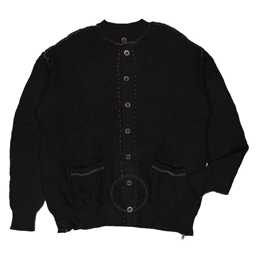 Viridi-Anne Men's Tops. Fashion category: Cardigans & Sweaters. SKU: VI-3656-07-A. Color: Black. Viridi-Anne Men's Black Cotton / Cashmere Button Down Cardigan. Crafted from a blend of cotton and cashmere, this cardigan features long sleeves, a crewneck, front warped rib stitch, ribbed trims, and exposed stitching. It is finished with a buttoned fastening and a slightly mid-length cut. Cotton95% Cashmere5% GENERAL Color: Black INFORMATION Brand: Viridi-Anne Gender: Mens Model: VI-3656-07-A DETAILS Category: Tops Apparel Type: Cardigans & Sweaters ADDITIONAL INFO Jomashop Sku: -VI365607A Department: Clothing