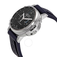 Silver-tone aisi 316L brushed steel case with a blue rubber strap. Fixed silver-tone polished steel bezel. Black dial with luminous silver-tone hands and index hour markers. Arabic numeral markers appear at the 6 and 12 o'clock positions. Minute markers. Tachymeter markings around the outer rim. Dial Type: Analog. Luminescent hands and markers. Chronograph - two sub-dials displaying: 30 minute and small second. Caliber P.9200 automatic movement. Scratch resistant sapphire crystal. Screw down crown. Solid case back. Round case shape, case size: 44 mm. Tang clasp. Water resistant at 100 meters / 330 feet. Functions: chronograph, tachymeter, hour, minute, second. Luxury watch style. Watch label: Swiss Made. Panerai Chronograph Automatic Black Dial Men's Watch PAM01109. CASE Case Size: 44 Case Material: AISI 316L Brushed Steel Case Shape: Round Case Back: Solid BAND Band Material: Rubber Band Type: Strap Band Color: Blue Clasp: Tang DIAL Dial Color: Black Type: Analog Crystal: Scratch Resistant Sapphire Hands: Luminous Silver-tone Dial Markers: Index Second Markers: Arabic Numeral Markers appear at the 6 and 12 o'clock positions. Minute Markers. Tachymeter Markings around the outer rim. Sub Dials: Two - 30 Minute and Small Second Luminiscence: Hands and Markers Bezel: Fixed Bezel Color: Silver-tone Bezel Material: Polished Steel Crown: Screw Down INFORMATION Brand: Panerai Gender: Mens Model: PAM01109bl Watch Label: Swiss Made Movement: Automatic Engine: Caliber P.9200 FEATURES Water Resistance: 100 meters / 330 feet Functions: Chronograph, Tachymeter, Hour, Minute, Second Watch Features: Chronograph, Rubber, Analog ADDITIONAL INFO Watch Style: Luxury Warranty: 2 Year Jomashop Warranty Jomashop Sku: PAM01109BL Department: Watches Category: Watches
