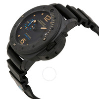 Black carbotech case with a black rubber strap. Uni-directional rotating black carbotech bezel. Black dial with luminous hands and dot hour markers. Arabic numerals mark the 6 and 12 o'clock positions. Dial Type: Analog. Luminescent hands and markers. Date display at the 3 o'clock position. Small seconds subdials. Panerai Calibre P.9000 Automatic movement, containing 28 Jewels, composed of 197 parts, bitting at 28800 vph, and has a power reserve of approximately 72 hours. Scratch resistant sapphire crystal. Screw down crown. Solid case back. Cushion case shape. Case size: 47 mm. Band width: 22 mm. Tang clasp. Water resistant at 300 meters / 1000 feet. Functions: date, hour, minute, small second, calculation of immersion time. Dive watch style. Watch label: Swiss Made. Panerai Luminor 1950 Automatic Black Dial Men's Watch PAM00616. GENERAL Box Type: Original Box CASE Case Size: 47 Case Material: Carbotech Case Shape: Cushion Case Back: Solid BAND Band Material: Rubber Band Type: Strap Band Color: Black Band Width: 22 mm Clasp: Tang DIAL Dial Color: Black Type: Analog Crystal: Scratch Resistant Sapphire Hands: Luminous Dial Markers: Dot Second Markers: Arabic Numerals mark the 6 and 12 o'clock positions Sub Dials: One - Small Second Luminiscence: Hands and Markers Bezel: Uni-directional Rotating Bezel Color: Black Bezel Material: Carbotech Crown: Screw Down INFORMATION Brand: Panerai Series: Luminor Collection Name: Luminor 1950 Gender: Mens Model: PAM00616 Watch Label: Swiss Made Movement: Automatic Engine: Panerai Calibre P.9000 Power Reserve: 72 hours FEATURES Water Resistance: 300 meters / 1000 feet Calendar: Date display at the 3 o'clock position Functions: Date, Hour, Minute, Small Second, Calculation of immersion time Watch Features: Rubber, Analog ADDITIONAL INFO Watch Style: Dive Warranty: 2 Year Jomashop Warranty UPC Code: 7613268493564 Jomashop Sku: PAM00616 Department: Watches Category: Watches