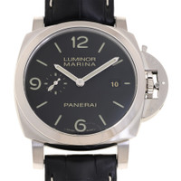 Silver-tone stainless steel case with a black alligator band. Fixed silver-tone stainless steel bezel. Black dial with silver-tone hands and index hour markers. Dial Type: Analog. Luminescent hands and markers. Date display at the 3 o'clock position. Panerai Calibre P.980 automatic movement with a 72-hour power reserve. Scratch resistant sapphire crystal. Screw down crown. Transparent see through case back. Cushion case shape, case size: 44 mm. Buckle clasp. Water resistant at 500 meters / 1650 feet. Functions: date, hour, minute, second. Luminor Series. Dive watch style. Watch label: Swiss Made. Panerai Luminor Automatic Black Dial Men's Watch PAM03312. GENERAL Box Type: Original Box CASE Case Material: Stainless Steel Case Shape: Cushion Case Back: Transparent See Through BAND Band Material: Alligator Band Type: Strap Band Color: Black Clasp: Buckle DIAL Dial Color: Black Type: Analog Crystal: Scratch Resistant Sapphire Hands: Silver-tone Dial Markers: Index Luminiscence: Hands and Markers Bezel: Fixed Bezel Color: Silver-tone Bezel Material: Stainless Steel Crown: Screw Down INFORMATION Brand: Panerai Series: Luminor Collection Name: Luminor Gender: Mens Model: PAM03312 Watch Label: Swiss Made Movement: Automatic Engine: Panerai Calibre P.980 Power Reserve: 72 hours FEATURES Water Resistance: 500 meters / 1650 feet Calendar: Date display at the 3 o'clock position Functions: Date, Hour, Minute, Second Watch Features: Stainless Steel, Alligator Leather, Analog ADDITIONAL INFO Watch Style: Dive Warranty: 2 Year Jomashop Warranty Jomashop Sku: PAM03312 Department: Watches
