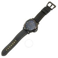 Black titanium case with a grey canvas strap. Fixed black titanium bezel. Blue dial with black hands and index hour markers. Dial Type: Analog. Luminescent hands and markers. Date display at the 3 o'clock position. One subdial displaying: small second. Panerai Calibre P.9010 Automatic movement, containing 31 Jewels, composed of 200 parts, bitting at 28800 vph, and has a power reserve of approximately 72 hours. Scratch resistant sapphire crystal. Screw down crown. Solid case back. Round case shape, case size: 44 mm. Buckle clasp. Water resistant at 300 meters / 1000 feet. Functions: date, hour, minute, small second. Additional Info: original box, international warranty card, manual (complete accessories). Luminor Series. Dive watch style. Watch label: Swiss Made. Panerai Luminor Hand Wind Blue Dial Men's Watch PAM01021. GENERAL Box Type: Original Box CASE Case Size: 44 Case Material: Titanium Case Shape: Round Case Back: Solid BAND Band Material: Canvas Band Type: Strap Band Color: Grey Clasp: Buckle DIAL Dial Color: Blue Type: Analog Crystal: Scratch Resistant Sapphire Hands: Black Dial Markers: Index Sub Dials: One - Small Second Luminiscence: Hands and Markers Bezel: Fixed Bezel Color: Black Bezel Material: Titanium Crown: Screw Down INFORMATION Brand: Panerai Series: Luminor Collection Name: Luminor Gender: Mens Model: PAM01021 Watch Label: Swiss Made Movement: Hand Wind Engine: Panerai Calibre P.9010 Power Reserve: 72 hours FEATURES Water Resistance: 300 meters / 1000 feet Calendar: Date display at the 3 o'clock position Functions: Date, Hour, Minute, Small Second Watch Features: Analog, Titanium ADDITIONAL INFO Watch Style: Dive Warranty: 2 Year Jomashop Warranty Additional Info: Original Box, Manual (Complete Accessories) Jomashop Sku: PAM01021 Department: Watches Category: Watches