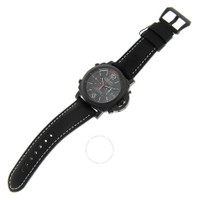 Black carbotech case with a black leather strap. Fixed black carbotech bezel. Grey dial with luminous black hands and index hour markers. Arabic numerals appear at the 6 and 12 o'clock positions. Minute markers. Regatta markings around the outer rim. Dial Type: Analog. Luminescent hands and markers. Chronograph - two sub-dials displaying: small seconds and 12 hours. Panerai Calibre P.9100 Automatic movement, containing 37 Jewels, composed of 302 parts, bitting at 28800 vph, and has a power reserve of approximately 72 hours. Scratch resistant sapphire crystal. Screw down crown. Solid case back. Cushion case shape. Case size: 47 mm. Case thickness: 18.4 mm. Tang clasp. Water resistant at 100 meters / 330 feet. Functions: chronograph, column wheel, flyback, date, hour, minute, second. Luminor Luna Rossa Series. Sport watch style. Watch label: Swiss Made. Panerai Luminor Luna Rossa Regatta Chronograph Automatic Grey Dial Men's Watch PAM01038. INFORMATION Brand: Panerai Series: Luminor Luna Rossa Collection Name: Luminor Luna Rossa Gender: Mens Model: PAM01038 Watch Label: Swiss Made Movement: Automatic Engine: Panerai Calibre P.9100 Power Reserve: 72 hours CASE Case Size: 47 mm Case Thickness: 18.4 mm Case Material: Carbotech Case Shape: Cushion Case Back: Solid BAND Band Material: Leather Band Type: Strap Band Color: Black Clasp: Tang DIAL Dial Color: Grey Type: Analog Crystal: Scratch Resistant Sapphire Hands: Luminous Black Dial Markers: Index Second Markers: Arabic Numerals appear at the 6 and 12 o'clock positions. Minute Markers. Regatta Markings around the outer rim Sub Dials: Two - Small Seconds and 12 Hours Luminiscence: Hands and Markers Bezel: Fixed Bezel Color: Black Bezel Material: Carbotech Crown: Screw Down FEATURES Water Resistance: 100 meters / 330 feet Functions: Chronograph, Column Wheel, FlyBack, Date, Hour, Minute, Second Watch Features: Chronograph, Leather, Flyback, Analog ADDITIONAL INFO Watch Style: Sport Warranty: 2 Year Jomashop Warranty Jomashop Sku: PAM01038 Department: Watches Category: Watches