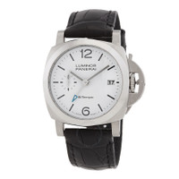Silver-tone stainless steel case with a black alligator band. Fixed silver-tone stainless steel bezel. White dial with silver-tone hands and index hour markers. Minute markers around the outer rim. Dial Type: Analog. Luminescent hands and markers. Date display at the 3 o'clock position. One subdial displaying: small second. Panerai Calibre P.900 Automatic movement, based upon Panerai OP XXXIV, containing 25 Jewels, bitting at 28800 vph, and has a power reserve of approximately 72 hours. Scratch resistant sapphire crystal. Round case shape, case size: 40 mm. Water resistant at 100 meters / 330 feet. Functions: date, hour, minute, small second. Additional Info: original box, international warranty card, manual (complete accessories). Luminor Quaranta Bitempo Series. Luxury watch style. Watch label: Swiss Made. Panerai Luminor Quaranta BiTempo Automatic White Dial Men's Watch PAM01367. INFORMATION Brand: Panerai Series: Luminor Quaranta Bitempo Collection Name: Luminor Quaranta BiTempo Gender: Mens Model: PAM01367 Watch Label: Swiss Made Movement: Automatic Engine: Panerai Calibre P.900 Power Reserve: 72 hours CASE Case Size: 40 mm Case Material: Stainless Steel Case Shape: Round BAND Band Material: Alligator Band Type: Strap Band Color: Black Clasp: Tang DIAL Dial Color: White Type: Analog Crystal: Scratch Resistant Sapphire Hands: Silver-tone Dial Markers: Index Second Markers: Minute Markers around the outer rim Sub Dials: One - Small Second Luminiscence: Hands and Markers Bezel: Fixed Bezel Color: Silver-tone Bezel Material: Stainless Steel FEATURES Water Resistance: 100 meters / 330 feet Calendar: Date display at the 3 o'clock position Functions: Date, Hour, Minute, Small Second Watch Features: Stainless Steel, Analog, Alligator Leather ADDITIONAL INFO Watch Style: Luxury Warranty: 2 Year Jomashop Warranty Additional Info: Original Box, International Warranty Card, Manual (Complete Accessories) Jomashop Sku: PAM01367 Department: Watches Category: Watches
