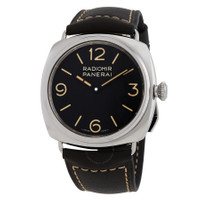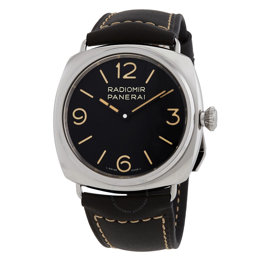 Silver-tone stainless steel case with a black leather strap. Fixed silver-tone stainless steel bezel. Black dial with black hands and index-Arabic numeral hour markers. Arabic numerals appear at the 3, 6, 9 and 12 o'clock positions. Dial Type: Analog. Luminescent hands and markers. Panerai Calibre P.6000 Hand Wind movement, containing 19 Jewels, bitting at 21600 vph, and has a power reserve of approximately 72 hours. Scratch resistant sapphire crystal. Solid case back. Cushion case shape, case size: 45 mm. Water resistant at 100 meters / 330 feet. Functions: hour, minute. Radiomir Officine Series. Luxury watch style. Watch label: Swiss Made. Panerai Radiomir Officine Hand Wind Black Dial Men's Watch PAM01382. CASE Case Size: 45 Case Material: Stainless Steel Case Shape: Cushion Case Back: Solid BAND Band Material: Leather Band Type: Strap Band Color: Black DIAL Dial Color: Black Type: Analog Crystal: Scratch Resistant Sapphire Hands: Black Dial Markers: Index-Arabic Numeral Second Markers: Arabic Numerals appear at the 3, 6, 9 and 12 o'clock positions Luminiscence: Hands and Markers Bezel: Fixed Bezel Color: Silver-tone Bezel Material: Stainless Steel INFORMATION Brand: Panerai Series: Radiomir Collection Name: Radiomir Officine Gender: Mens Model: PAM01382 Watch Label: Swiss Made Movement: Hand Wind Engine: Panerai Calibre P.6000 Power Reserve: 72 hours FEATURES Water Resistance: 100 meters / 330 feet Functions: Hour, Minute Watch Features: Stainless Steel, Leather, Analog ADDITIONAL INFO Watch Style: Luxury Warranty: 2 Year Jomashop Warranty Jomashop Sku: PAM01382 Department: Watches
