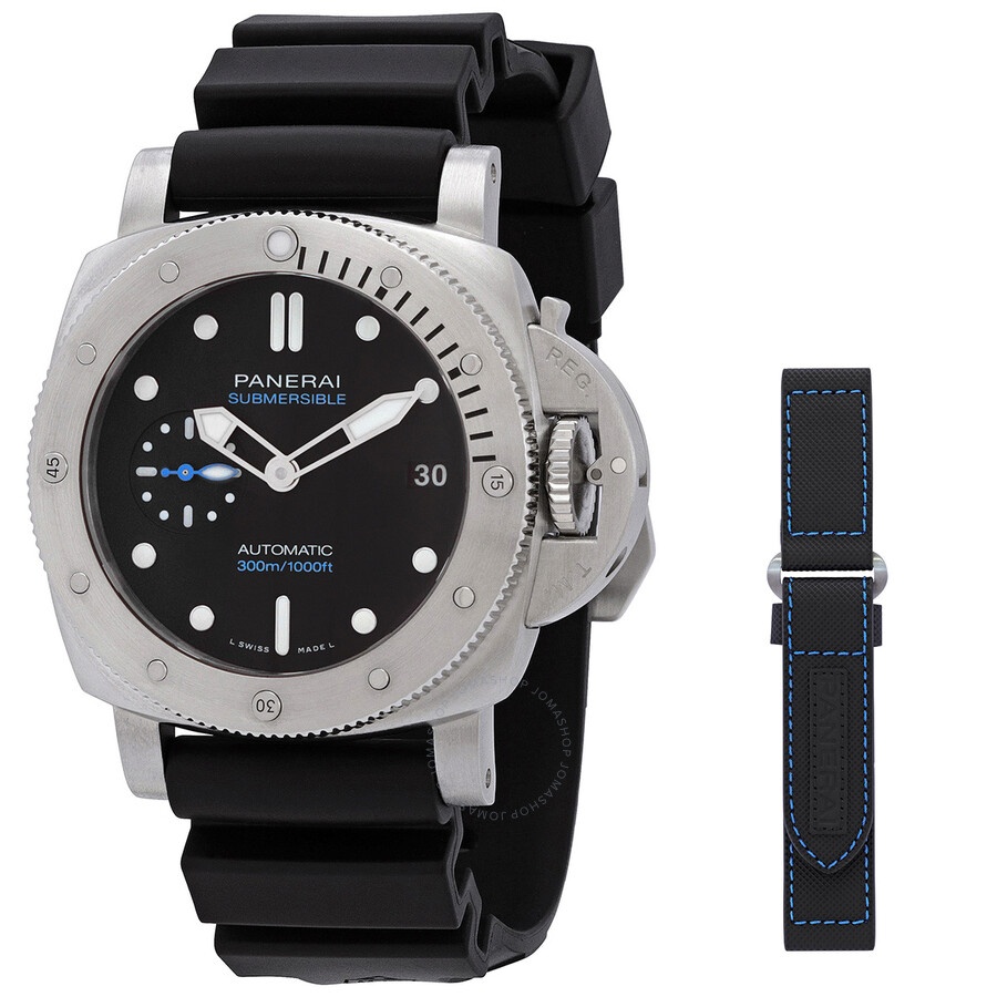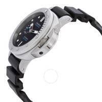 Silver-tone stainless steel case with a black rubber strap. Silver-tone stainless steel bezel. Black dial with silver-tone hands and index hour markers. Dial Type: Analog. Luminescent hands and markers. Date display at the 3 o'clock position. Automatic movement. Scratch resistant sapphire crystal. Cushion case shape, case size: 42 mm. Buckle clasp. Water resistant at 300 meters / 1000 feet. Functions: date, hour, minute, second. Additional Info: original box, international warranty card, manual (complete accessories). Submersible Series. Luxury watch style. Watch label: Swiss Made. Panerai Submersible Automatic Black Dial Men's Watch PAM01973. GENERAL Box Type: Original Box CASE Case Size: 42 Case Material: Stainless Steel Case Shape: Cushion BAND Band Material: Rubber Band Type: Strap Band Color: Black Clasp: Buckle DIAL Dial Color: Black Type: Analog Crystal: Scratch Resistant Sapphire Hands: Silver-tone Dial Markers: Index Luminiscence: Hands and Markers Bezel Color: Silver-tone Bezel Material: Stainless Steel INFORMATION Brand: Panerai Series: Submersible Collection Name: Submersible Gender: Mens Model: PAM01973 Watch Label: Swiss Made Movement: Automatic FEATURES Water Resistance: 300 meters / 1000 feet Calendar: Date display at the 3 o'clock position Functions: Date, Hour, Minute, Second Watch Features: Analog, Rubber, Stainless Steel ADDITIONAL INFO Watch Style: Luxury Warranty: 2 Year Jomashop Warranty Additional Info: Original Box, Manual (Complete Accessories) Jomashop Sku: PAM01973 Department: Watches Category: Watches