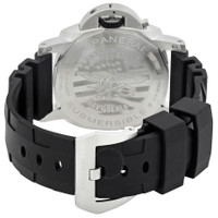 Stainless steel case with a black rubber strap. Stainless steel bezel. Dial Type: Analog. Date display at the 3 o'clock position. One subdial displaying: small second. Panerai Calibre P.900 Automatic movement, based upon Panerai OP XXXIV, containing 25 Jewels, bitting at 28800 vph, and has a power reserve of approximately 72 hours. Scratch resistant sapphire crystal. Round case shape. Water resistant at 30 meters / 100 feet. Functions: GMT, second time zone, hour, minute, second. Additional Info: unique edition of 500 units. Submersible Series. Luxury watch style. Watch label: Swiss Made. Panerai Submersible GMT Navy SEALs Automatic Men's Watch PAM01323. CASE Case Size: 44 Case Material: Stainless Steel Case Shape: Round BAND Band Material: Rubber Band Type: Strap Band Color: Black DIAL Dial Color: Gray Type: Analog Crystal: Scratch Resistant Sapphire Sub Dials: One - Small Second Bezel Material: Stainless Steel INFORMATION Brand: Panerai Series: Submersible Collection Name: Submersible Gender: Mens Model: PAM01323 Watch Label: Swiss Made Movement: Automatic Engine: Panerai Calibre P.900 Power Reserve: 72 hours FEATURES Water Resistance: 30 meters / 100 feet Calendar: Date display at the 3 o'clock position Functions: GMT, Second Time Zone, Hour, Minute, Second Watch Features: Analog, GMT, Rubber, Stainless Steel, Time Zone ADDITIONAL INFO Watch Style: Luxury Warranty: 2 Year Jomashop Warranty Additional Info: Unique edition of 500 units Jomashop Sku: PAM01323 Department: Watches Category: Watches