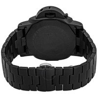 Black ceramic case with a black ceramic bracelet. Fixed black ceramic bezel. Black dial with luminous black hands and Arabic numeral hour markers. Dial Type: Analog. Luminescent hands and markers. Date display at the 3 o'clock position. Small seconds subdials. Panerai calibre P.9010 automatic movement, containing 31 Jewels, composed of 200 parts, bitting at 28800 vph, and has a power reserve of approximately 72 hours. Scratch resistant sapphire crystal. Solid case back. Cushion case shape. Case size: 44 mm. Case thickness: 15.6 mm. Band width: 24 mm. Fold over clasp with a push button release. Water resistant at 100 meters / 330 feet. Functions: GMT, second time zone, hour, minute, second. Tuttonero Luminor Gmt Series. Luxury watch style. Watch label: Swiss Made. Panerai Tuttonero Luminor GMT Automatic Black Dial Men's Watch PAM01438. INFORMATION Brand: Panerai Series: Tuttonero Luminor Gmt Collection Name: Tuttonero Luminor GMT Gender: Mens Model: PAM01438 Watch Label: Swiss Made Movement: Automatic Engine: Panerai Calibre P.9010 Power Reserve: 3 days CASE Case Size: 44 mm Case Thickness: 15.6 mm Case Material: Ceramic Case Shape: Cushion Case Back: Solid BAND Band Material: Ceramic Band Type: Bracelet Band Color: Black Band Width: 24 mm Clasp: Fold Over with Push Button Release DIAL Dial Color: Black Type: Analog Crystal: Scratch Resistant Sapphire Hands: Luminous Black Dial Markers: Arabic Numeral Sub Dials: One - Small Second Luminiscence: Hands and Markers Bezel: Fixed Bezel Color: Black Bezel Material: Ceramic FEATURES Water Resistance: 100 meters / 330 feet Calendar: Date display at the 3 o'clock position Functions: GMT, Second Time Zone, Hour, Minute, Second Watch Features: Time Zone, Ceramic, GMT, Analog ADDITIONAL INFO Watch Style: Luxury Warranty: 2 Year Jomashop Warranty UPC Code: 7613268934302 Jomashop Sku: PAM01438 Department: Watches Category: Watches