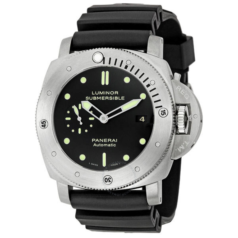 Pre-owned Grey titanium case with a black rubber strap. Uni-directional grey titanium bezel. Black dial with luminous hands and dot hour markers. Dial Type: Analog. Luminescent hands and markers. Date display at the 3 o'clock position. Small seconds sub-dial at the 9 o'clock position subdials. Panerai Calibre P.9000 Automatic movement, containing 28 Jewels, composed of 197 parts, bitting at 28800 vph, and has a power reserve of approximately 72 hours. Scratch resistant sapphire crystal. Protected crown. Skeleton case back. Cushion case shape, case size: 47 mm, case thickness: 18 mm. Band width: 26-22 mm, band length: 9.25 inches. Tang clasp. Water resistant at 300 meters / 1000 feet. Functions: date, hour, minute, small second, calculation of immersion time. Dive watch style. Watch label: Swiss Made. Panerai Luminor 1950 Men's Watch PAM00305. GENERAL Collection Name: Luminor 1950 INFORMATION Brand: Panerai Series: Luminor 1950 Model: PAM00305 Gender: Mens Watch Label: Swiss Made Movement: Automatic Engine: Panerai Calibre P.9000 Power Reserve: 72 hours CONDITION INFORMATION Box: No Preowned Item Condition: Excellent Papers: No CASE Case Size: 47 mm Case Thickness: 18 mm Case Material: Titanium Case Shape: Cushion Case Back: Skeleton DIAL Type: Analog Dial Color: Black Crystal: Scratch Resistant Sapphire Hands: Luminous Dial Markers: Dot Sub Dials: One - Small Second at the 9 o'clock position Luminiscence: Hands and Markers Bezel: Uni-directional Bezel Color: Grey Bezel Material: Titanium Crown: Protected BAND Band Type: Strap Band Material: Leather Band Color: Black Band Width: 26-22 mm Clasp: Buckle FEATURES Water Resistance: 300 meters / 1000 feet Calendar: Date display at the 3 o'clock position Functions: Date, Hour, Minute, Small Second, Calculation of immersion time Watch Features: Titanium, Rubber, Analog ADDITIONAL INFO Watch Style: Dive Warranty: 1 Year Jomashop Warranty UPC Code: 7612456526923 Jomashop Sku: PRE-P-PAM49509 Department: Watches Category: Watches