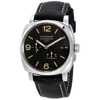 Pre-owned Silver-tone stainless steel case with a black leather strap. Fixed silver-tone stainless steel bezel. Black dial with luminous silver-tone hands and index hour markers. Arabic numerals mark the 6, 9 and 12 o'clock positions. Dial Type: Analog. Luminescent hands and markers. Date display at the 3 o'clock position. One- 24 hour indicator subdials. Panerai Calibre P.4002 Automatic movement, containing 31 Jewels, composed of 288 parts, bitting at 28800 vph, and has a power reserve of approximately 72 hours. Scratch resistant sapphire crystal. Screw down crown. Transparent case back. Cushion case shape, case size: 45 mm, case thickness: 13 mm. Band width: 24 mm. Tang clasp. Water resistant at 100 meters / 330 feet. Functions: date, GMT, second time zone, hour, minute, second, power reserve indicator. Luxury watch style. Watch label: Swiss Made. Panerai Radiomir 1940 3 Days GMT Power Reserve Automatic Men's Watch PAM00628. GENERAL Collection Name: Radiomir 1940 INFORMATION Brand: Panerai Series: Radiomir Model: PAM 00628 Gender: Mens Watch Label: Swiss Made Movement: Automatic Engine: Panerai Calibre P.4002 Power Reserve: 72 hours CONDITION INFORMATION Box: Yes Preowned Item Condition: Excellent Papers: Yes Year: 2012 Comments: This Panerai Radiomir 1940, reference number PAM 00628, has a manufacturer year of 2012. Box Included, Papers Included. This watch has a 45mm Steel Case with Steel bezel, Black Arabic numerals dial and Leather bracelet with Buckle. The Automatic movement has GMT function. The wrist measures 8.25 inches or 20.955 centimeters. The condition is Very Good The watch listed is in stock and the pictures shown are of the actual watch for sale. All of our watches have been thoroughly checked by our own CASE Case Size: 45 Case Thickness: 13 mm Case Material: Stainless Steel Case Shape: Cushion Case Back: Transparent DIAL Type: Analog Dial Color: Black Crystal: Scratch Resistant Sapphire Hands: Luminous Silver-tone Second Markers: Arabic Numerals mark the 6, 9 and 12 o'clock positions Dial Markers: Index Sub Dials: One - 24 Hour Indicator Luminiscence: Hands and Markers Bezel: Fixed Bezel Color: Silver-tone Bezel Material: Stainless Steel Crown: Screw Down BAND Band Type: Strap Band Material: Leather Band Color: Black Band Width: 24 mm Clasp: Tang FEATURES Water Resistance: 100 meters / 330 feet Calendar: Date display at the 3 o'clock position Functions: Date, GMT, Second Time Zone, Hour, Minute, Second, Power Reserve Indicator Watch Features: Power Reserve Indicator, GMT, Analog, Leather, Stainless Steel, Time Zone ADDITIONAL INFO Watch Style: Luxury Warranty: 1 Year Jomashop Warranty UPC Code: 7613268654088 Jomashop Sku: PRE-P-PAM74529 Department: Watches Category: Watches