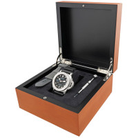 Silver-tone titanium case with a black rubber strap. Uni-directional rotating silver-tone stainless steel bezel. Black dial with silver-tone hands and index hour markers. Dial Type: Analog. Luminescent hands and markers. Date display at the 3 o'clock position. One subdial displaying: small second. Panerai Calibre P.9010 Automatic movement, containing 31 Jewels, composed of 200 parts, bitting at 28800 vph, and has a power reserve of approximately 72 hours. Scratch resistant sapphire crystal. Screw down crown. Solid case back. Round case shape, case size: 47 mm. Water resistant at 300 meters / 1000 feet. Functions: date, hour, minute, small second. Additional Info: original box, international warranty card, manual (complete accessories). Submersible Series. Dive watch style. Watch label: Swiss Made. Panerai Submersible 47mm Automatic Black Dial Men's Watch PAM02305. GENERAL Comments: Include: manual & tools Preowned Item Condition: Very Good CASE Case Diameter: 47 mm Case Material: Titanium Case Shape: Round Case Back: Solid BAND Band Material: Rubber Band Type: Strap Band Color: Black DIAL Dial Color: Black Type: Analog Crystal: Scratch Resistant Sapphire Hands: Silver-tone Dial Markers: Index Sub Dials: One - Small Second Luminiscence: Hands and Markers Bezel: Uni-directional Rotating Bezel Color: Silver-tone Bezel Material: Titanium Crown: Screw Down INFORMATION Brand: Panerai Series: Submersible Collection Name: Submersible Gender: Mens Model: PAM02305 Watch Label: Swiss Made Movement: Automatic Engine: Panerai Calibre P.9010 Power Reserve: 72 hours FEATURES Water Resistance: 300 meters / 1000 feet Calendar: Date display at the 3 o'clock position Functions: Date, Hour, Minute, Small Second Watch Features: Analog, Rubber, Stainless Steel, Titanium ADDITIONAL INFO Watch Style: Dive Warranty: 1 Year Jomashop Warranty Jomashop Sku: PRE-PAM02305 Department: Watches Category: Watches