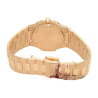 18kt rose gold case with a rose gold-tone 18kt rose gold bracelet. Fixed 18kt rose gold 46 diamond set (~0.73 ct) bezel. White dial with luminous hands and index hour markers. Minute markers around the outer rim. Dial Type: Analog. Luminescent hands and markers. Date display at the 3 o'clock position. Patek Philippe Calibre E23-250 S C quartz movement. Scratch resistant sapphire crystal. Solid case back. Cushion case shape. Case size: 32 mm. Nautilus deployment clasp. Water resistant at 60 meters / 200 feet. Functions: date, hour, minute, second. Luxury watch style. Watch label: Swiss Made. Patek Philippe 18kt Rose Gold Diamond Ladies Watch 7010-1R-011. INFORMATION Brand: Patek Philippe Series: Nautilus Collection Name: Nautilus Gender: Womens Model: 7010/1R-011 Watch Label: Swiss Made Movement: Quartz Engine: Patek Philippe Calibre E23-250 S C CASE Case Size: 32 mm Case Material: 18kt Rose Gold Case Shape: Cushion Case Back: Solid BAND Band Material: 18kt Rose Gold Band Type: Bracelet Band Color: Rose Gold-tone Clasp: Nautilus Deployment DIAL Dial Color: White Type: Analog Crystal: Scratch Resistant Sapphire Hands: Luminous Dial Markers: Index Second Markers: Minute Markers around the outer rim Luminiscence: Hands and Markers Bezel: Fixed Bezel Color: 18kt Rose Gold Bezel Material: 46 Diamond Set (~0.73 ct) FEATURES Water Resistance: 60 meters / 200 feet Calendar: Date display at the 3 o'clock position Functions: Date, Hour, Minute, Second Watch Features: Diamond, Gold, Analog ADDITIONAL INFO Watch Style: Luxury Warranty: 2 Year Jomashop Warranty Jomashop Sku: PK-7010-1R-011 Department: Watches Category: Watches