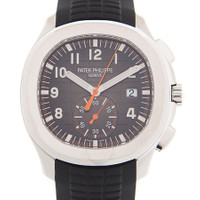 Silver-tone stainless steel case with a black rubber strap. Fixed silver-tone stainless steel bezel. Black dial with silver-tone hands and Arabic numeral hour markers. Minute markers around the outer rim. Dial Type: Analog. Luminescent hands and markers. Date display at the 3 o'clock position. One- 60 minutes subdials. Patek Philippe Calibre CH 28-520 C Automatic movement, containing 35 Jewels, composed of 327 parts, bitting at 28800 vph, and has a power reserve of approximately 55 hours. Scratch resistant sapphire crystal. Screw down crown. Transparent case back. Cushion case shape, case size: 42.2 mm, case thickness: 11.9 mm. Band width: 22 mm. Fold-over clasp. Water resistant at 120 meters / 400 feet. Functions: date, hour, minute, second. Additional Info: comes with interchangeable orange composite strap. Luxury watch style. Watch label: Swiss Made. Patek Philippe Aquanaut Black Dial Automatic Men's Chronograph Watch 5968A-001. GENERAL Box Type: Original Box CASE Case Size: 42 Case Thickness: 11.9 mm Case Material: Stainless Steel Case Shape: Cushion Case Back: Transparent BAND Band Material: Rubber Band Type: Strap Band Color: Black Band Width: 22 mm Clasp: Fold-over DIAL Dial Color: Black Type: Analog Crystal: Scratch Resistant Sapphire Hands: Silver-tone Dial Markers: Arabic Numeral Second Markers: Minute Markers around the outer rim Sub Dials: One - 60 Minute Luminiscence: Hands and Markers Bezel: Fixed Bezel Color: Silver-tone Bezel Material: Stainless Steel Crown: Screw Down INFORMATION Brand: Patek Philippe Series: Aquanaut Collection Name: Aquanaut Gender: Mens Model: 5968A-001 Watch Label: Swiss Made Movement: Automatic Engine: Patek Philippe Calibre CH 28-520 C Power Reserve: 55 hours FEATURES Water Resistance: 120 meters / 400 feet Calendar: Date display at the 3 o'clock position Functions: Date, Hour, Minute, Second Watch Features: Analog, Rubber, Stainless Steel, Chronograph ADDITIONAL INFO Watch Style: Luxury Warranty: 2 Year Jomashop Warranty Additional Info: comes with interchangeable orange composite strap Jomashop Sku: PK-5968A-001 Department: Watches Category: Watches