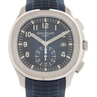 18kt white gold case with a blue rubber strap. Fixed 18kt white gold bezel. Blue dial with Arabic numeral hour markers. Dial Type: Analog. Date display at the 3 o'clock position. Patek Philippe Calibre CH 28-520 C Automatic movement, containing 35 Jewels, composed of 327 parts, bitting at 28800 vph, and has a power reserve of approximately 55 hours. Scratch resistant sapphire crystal. Screw down crown. Transparent see through case back. Cushion case shape, case size: 42.2 mm, case thickness: 11.9 mm. Deployment clasp. Water resistant at 120 meters / 400 feet. Functions: date, hour, minute, second. Additional Info: original box, international warranty card, manual (complete accessories). Aquanaut Series. Luxury watch style. Watch label: Swiss Made. Patek Philippe Aquanaut Automatic Blue Dial Men's Watch 5968G-001. GENERAL Box Type: Original Box CASE Case Size: 42 Case Thickness: 11.9 mm Case Material: 18kt White Gold Case Shape: Cushion Case Back: Transparent See Through BAND Band Material: Rubber Band Type: Strap Band Color: Blue Clasp: Deployment DIAL Dial Color: Blue Type: Analog Crystal: Scratch Resistant Sapphire Dial Markers: Arabic Numeral Bezel: Fixed Bezel Material: 18kt White Gold Crown: Screw Down INFORMATION Brand: Patek Philippe Series: Aquanaut Collection Name: Aquanaut Gender: Mens Model: 5968G-001 Watch Label: Swiss Made Movement: Automatic Engine: Patek Philippe Calibre CH 28-520 C FEATURES Water Resistance: 120 meters / 400 feet Calendar: Date display at the 3 o'clock position Functions: Chronograph, Hour, Minute, Second Watch Features: Analog, Gold, Rubber, Chronograph ADDITIONAL INFO Watch Style: Luxury Warranty: 2 Year Jomashop Warranty Additional Info: Original Box, Manual (Complete Accessories) Jomashop Sku: PK-5968G001 Department: Watches Category: Watches