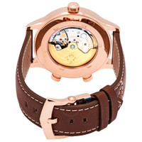 18kt rose gold case with a vintage brown (calfskin) leather strap. Fixed 18kt rose gold bezel. Brown sunburst dial with luminous rose gold hands and Arabic numeral hour markers. Local and home (dual time) indicators. Minute markers around the outer rim. Dial Type: Analog. Luminescent hands. Local date sub-dial at the 6 o'clock position. Patek Philippe calibre 324 S C FUS automatic movement, containing 29 Jewels, composed of 294 parts, bitting at 28800 vph, and has a power reserve of approximately 45 hours. Scratch resistant sapphire crystal. Transparent case back. Round case shape. Case size: 42 mm. Case thickness: 10.78 mm. Tang clasp. Water resistant at 60 meters / 200 feet. Functions: date, second time zone, hour, minute, second, local time, home time, day/night indicator. Calatrava Pilot Travel Time Series. Pilot watch style. Watch label: Swiss Made. Patek Philippe Calatrava Pilot Travel Time 18kt Rose Gold Automatic Men's Watch 5524R-001. INFORMATION Brand: Patek Philippe Series: Calatrava Pilot Travel Time Collection Name: Calatrava Pilot Travel Time Gender: Mens Model: 5524R-001 Watch Label: Swiss Made Movement: Automatic Engine: Patek Philippe Calibre 324 S C FUS Power Reserve: 45 hours CASE Case Size: 42 mm Case Thickness: 10.78 mm Case Material: 18kt Rose Gold Case Shape: Round Case Back: Transparent BAND Band Material: (Calfskin) Leather Band Type: Strap Band Color: Vintage Brown Clasp: Tang DIAL Dial Color: Brown Sunburst Type: Analog Crystal: Scratch Resistant Sapphire Hands: Luminous Rose Gold Dial Markers: Arabic Numeral Second Markers: Local and Home (Dual Time) Indicators. Minute Markers around the outer rim Sub Dials: Date Luminiscence: Hands Bezel: Fixed Bezel Material: 18kt Rose Gold FEATURES Water Resistance: 60 meters / 200 feet Calendar: Date display at the 6 o'clock position Functions: Date, Second Time Zone, Hour, Minute, Second, Local Time, Home Time, Day/Night Indicator Watch Features: Time Zone, Leather, Gold, Day/Night Indicator, Analog ADDITIONAL INFO Watch Style: Pilot Warranty: 2 Year Jomashop Warranty UPC Code: 842047146545 Jomashop Sku: PK-5524R-001 Department: Watches Category: Watches