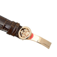18kt rose gold case with a brown (alligator) leather strap. Fixed 18kt rose gold bezel. Silvery opaline dial with rose gold hands and index hour markers. Minute markers around the outer rim. Dial Type: Analog. Annual calendar -. day of the week and month. 24 hour / moonphase sub-dial. Patek Philippe calibre 324 S QA LU 24H/303 automatic movement, containing 34 Jewels, composed of 347 parts, bitting at 28800 vph, and has a power reserve of approximately 45 hours. Scratch resistant sapphire crystal. Transparent case back. Round case shape. Case size: 38.5 mm. Case thickness: 11.2 mm. Tang clasp. Water resistant at 30 meters / 100 feet. Functions: annual calendar, moon phase, month, date, day, GMT, second time zone, hour, minute, second. Annual Calendar Series. Luxury watch style. Watch label: Swiss Made. Item Variations: 5396R 011, 5396R.011, 5396R011. Patek Philippe Complications Annual Calendal 18kt Rose Gold Automatic Men's Watch 5396R-011. INFORMATION Brand: Patek Philippe Series: Annual Calendar Collection Name: Annual Calendar Gender: Mens Model: 5396R-011 Watch Label: Swiss Made Movement: Automatic Engine: Patek Philippe Calibre 324 S QA LU 24H/303 Power Reserve: 35-45 hours CASE Case Size: 38.5 mm Case Thickness: 11.2 mm Case Material: 18kt Rose Gold Case Shape: Round Case Back: Transparent BAND Band Material: (Alligator) Leather Band Type: Strap Band Color: Brown Clasp: Tang DIAL Dial Color: Silvery Opaline Type: Analog Crystal: Scratch Resistant Sapphire Hands: Rose Gold Dial Markers: Index Second Markers: Minute Markers around the outer rim Sub Dials: 24 Hour / Moonphase Bezel: Fixed Bezel Material: 18kt Rose Gold FEATURES Water Resistance: 30 meters / 100 feet Calendar: Annual Calendar - Day of the Week and Month Functions: Annual Calendar, Moon Phase, Month, Date, Day, GMT, Second Time Zone, Hour, Minute, Second Watch Features: Alligator Leather, Analog, GMT, Annual Calendar, Month, Gold, Leather, Moon Phase, Time Zone ADDITIONAL INFO Watch Style: Luxury Warranty: 2 Year Jomashop Warranty Jomashop Sku: PK-5396R-011 Item Variation: 5396R 011, 5396R.011, 5396R011 Department: Watches Category: Watches