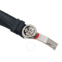 18kt white gold case with a blue alligator leather strap. Fixed 18kt white gold bezel. Blue dial with silver-tone hands and index hour markers. Minute markers. 24 hour markers. world time cities around the outer rim. Dial Type: Analog. Luminescent hands and markers. One subdial displaying: 30 minute. Patek Philippe Calibre CH 28-520 HU Automatic movement, containing 38 Jewels, composed of 343 parts, bitting at 28800 vph, and has a power reserve of approximately 55 hours. Scratch resistant sapphire crystal. Transparent case back. Round case shape, case size: 39.5 mm, case thickness: 12.86 mm. Band width: 20 mm. Fold over clasp. Water resistant at 30 meters / 100 feet. Functions: GMT, second time zone, hour, minute, second, day-night indicator. Additional Info: unsuitable for prolonged contact with water e.g. swimming, bathing. Complications Series. Luxury watch style. Watch label: Swiss Made. Patek Philippe Complications Automatic Blue Dial Men's Watch 5930G-010. GENERAL Box Type: Original Box CASE Case Size: 39 Case Thickness: 12.86 mm Case Material: 18kt White Gold Case Shape: Round Case Back: Transparent BAND Band Material: Alligator Leather Band Type: Strap Band Color: Blue Band Width: 20 mm Clasp: Fold Over DIAL Dial Color: Blue Type: Analog Crystal: Scratch Resistant Sapphire Hands: Silver-tone Dial Markers: Index Second Markers: Minute Markers. 24 Hour Markers. World Time Cities around the outer rim Sub Dials: One - 30 Minute Luminiscence: Hands and Markers Bezel: Fixed Bezel Material: 18kt White Gold INFORMATION Brand: Patek Philippe Series: Complications Collection Name: Complications Gender: Mens Model: 5930G-010 Watch Label: Swiss Made Movement: Automatic Engine: Patek Philippe Calibre CH 28-520 HU Power Reserve: 50-55 hours FEATURES Water Resistance: 30 meters / 100 feet Functions: GMT, Second Time Zone, Hour, Minute, Second, Day-Night Indicator Watch Features: Alligator Leather, Analog, GMT, World Time, Gold, Leather, Time Zone ADDITIONAL INFO Watch Style: Luxury Warranty: 2 Year Jomashop Warranty Additional Info: unsuitable for prolonged contact with water e.g. swimming, bathing Jomashop Sku: PK-5930G010 Department: Watches Category: Watches