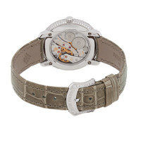 18kt white gold case with a shiny taupe alligator leather strap. Fixed-diamond set bezel. White mother of pearl dial with Arabic numeral hour markers. Dial Type: Analog. One- small seconds (inner moon phase) subdials. Patek Philippe Calibre 215 PS LU hand wind movement with a 44-hour power reserve. Scratch resistant sapphire crystal. Round case shape, case size: 33.3 mm, case thickness: 7.98 mm. Water resistant at 30 meters / 100 feet. Functions: moon phase, hour, minute, small second. Additional Info: bezel and case set with 273 graduated size diamonds in a spiral (~2.12 ct). prong buckle set with 32 diamonds (~0.25 ct). Luxury watch style. Watch label: Swiss Made. Item Variations: 4968G 010, 4968G.010, 4968G010. Patek Philippe Complications Hand Wind White Mother of Pearl Dial Ladies Watch 4968G-010. INFORMATION Brand: Patek Philippe Series: Complications Collection Name: Complications Gender: Womens Model: 4968G-010 Watch Label: Swiss Made Movement: Hand Wind Engine: Patek Philippe Calibre 215 PS LU Power Reserve: 44 hours CASE Case Size: 33.3 mm Case Thickness: 7.98 mm Case Material: 18kt White Gold Case Shape: Round Case Back: Transparent BAND Band Material: Alligator Leather Band Type: Strap Band Color: Shiny Taupe Clasp: Pin Buckle DIAL Dial Color: White Mother of Pearl Type: Analog Crystal: Scratch Resistant Sapphire Hands: Black Leaf-style shape Dial Markers: Arabic Numeral Second Markers: Minute Markers around the outer rim Sub Dials: One - Small Second (inner moon phase) Bezel: Fixed Bezel Color: 18kt White Gold Bezel Material: Diamond Set FEATURES Water Resistance: 30 meters / 100 feet Functions: Moon Phase, Hour, Minute, Small Second Watch Features: Alligator Leather, Analog, Gold, Leather, Moon Phase, Diamond ADDITIONAL INFO Watch Style: Luxury Warranty: 2 Year Jomashop Warranty Additional Info: Bezel and case set with 273 graduated size diamonds in a spiral (~2.12 ct). Prong buckle set with 32 diamonds (~0.25 ct) Jomashop Sku: PK-4968G-010 Item Variation: 4968G 010, 4968G.010, 4968G010 Department: Watches Category: Watches