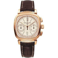 18kt rose gold case with a brown leather strap. Fixed 18kt rose gold bezel with diamond set. Silvery-white opaline dial with rose gold-tone hands and index- Roman numerals hour markers. Minute markers around the outer rim. Dial Type: Analog. Luminescent hands. Chronograph - two sub-dials displaying: 60 seconds, and 30 minute. Patek Philippe Calibre CH 29-535 PS Hand Wind movement, containing 33 Jewels, composed of 269 parts, bitting at 28800 vph, and has a power reserve of approximately 65 hours. Scratch resistant sapphire crystal. Skeleton transparent exhibition see through case back. Cushion case shape, case size: 35 × 39 mm. Buckle clasp. Water resistant at 30 meters / 100 feet. Functions: chronograph, hour, minute, second. Additional Info: dial flange set with 116 diamonds (~0.55 ct.). Complications Series. Luxury watch style. Watch label: Swiss Made. Item Variations: 7071R 001, 7071R.001, 7071R001. Patek Philippe Complications Silvery-White Opaline Dial Men's Chronograph Watch 7071R-001. GENERAL Box Type: Original Box CASE Case Size: 35 Case Material: 18kt Rose Gold Case Shape: Cushion Case Back: Skeleton Transparent Exhibition See Through BAND Band Material: Leather Band Type: Strap Band Color: Brown Clasp: Buckle DIAL Dial Color: Silvery-White Opaline Type: Analog Crystal: Scratch Resistant Sapphire Hands: Rose Gold-tone Dial Markers: Index- Roman Numerals Second Markers: Minute Markers around the outer rim Sub Dials: Two - 60 Second and 30 Minute Luminiscence: Hands Bezel: Fixed Bezel Color: 18kt Rose Gold Bezel Material: Diamond Set INFORMATION Brand: Patek Philippe Series: Complications Collection Name: Complications Gender: Mens Model: 7071R-001 Watch Label: Swiss Made Movement: Hand Wind Engine: Patek Philippe Calibre CH 29-535 PS Power Reserve: 65 hours FEATURES Water Resistance: 30 meters / 100 feet Functions: Chronograph, Hour, Minute, Second Watch Features: Analog, Gold, Leather, Chronograph, Diamond ADDITIONAL INFO Watch Style: Luxury Warranty: 2 Year Jomashop Warranty Additional Info: Dial flange set with 116 diamonds (~0.55 ct.) Jomashop Sku: PK-7071R-001 Item Variation: 7071R 001, 7071R.001, 7071R001 Department: Watches Category: Watches
