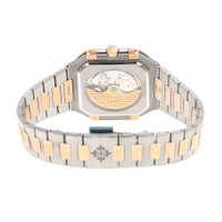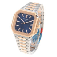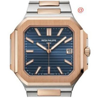 Two-tone (silver-tone and rose gold-tone) stainless steel and 18kt rose gold bracelet. Fixed rose gold-tone 18kt rose gold bezel. Sunburst blue dial with rose gold-tone hands and index hour markers. Dial Type: Analog. Luminescent hands and markers. Date display at the 3 o'clock position. Patek Philippe Calibre 26-330 S C Automatic movement, containing 30 Jewels, composed of 212 parts, bitting at 28800 vph, and has a power reserve of approximately 45 hours. Scratch resistant sapphire crystal. Screw down crown. Transparent see through case back. Square case shape, case size: 45 mm, case thickness: 8.3 mm. Water resistant at 30 meters / 100 feet. Functions: date, hour, minute, second. Cubitus Series. Luxury watch style. Watch label: Swiss Made. Patek Philippe Cubitus Automatic Men's Watch 5821-1AR-001. CASE Case Size: 45 Case Thickness: 8.3 mm Case Material: 18kt Rose Gold Case Shape: Square Case Back: Transparent See Through BAND Band Material: Stainless Steel and 18kt Rose Gold Band Type: Bracelet Band Color: Two-tone (Silver-tone and Rose Gold-tone) Clasp: Fold Over with Safety Release DIAL Dial Color: Sunburst Blue Type: Analog Crystal: Scratch Resistant Sapphire Hands: Rose Gold-tone Dial Markers: Index Second Markers: Minute Markers around the outer rim Luminiscence: Hands and Markers Bezel: Fixed Bezel Color: Rose Gold-tone Bezel Material: 18kt Rose Gold Crown: Screw Down INFORMATION Brand: Patek Philippe Series: Cubitus Collection Name: Cubitus Gender: Mens Model: 5821-1AR-001 Watch Label: Swiss Made Movement: Automatic Engine: Patek Philippe Calibre 26-330 S C Power Reserve: 45 hours FEATURES Water Resistance: 30 meters / 100 feet Calendar: Date display at the 3 o'clock position Functions: Date, Hour, Minute, Second Watch Features: Stainless Steel, Gold, Analog ADDITIONAL INFO Watch Style: Luxury Warranty: 2 Year Jomashop Warranty Jomashop Sku: PK5821-1AR-001 Department: Watches
