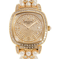 Rose gold-tone 18kt rose gold case and bracelet. Fixed rose gold-tone bezel with diamond set 18kt rose gold. Gold-tone dial with rose gold-tone hands and diamond hour markers. Dial Type: Analog. One subdial displaying: small second. Patek Philippe Calibre 215 Hand Wind movement, containing 18 Jewels, composed of 130 parts, bitting at 28800 vph, and has a power reserve of approximately 44 hours. Scratch resistant sapphire crystal. Transparent see through case back. Cushion case shape, case size: 31 × 34.8 mm. Fold over clasp with a safety release. Water resistant at 30 meters / 100 feet. Functions: hour, minute. Additional Info: original box, international warranty card, manual (complete accessories). Gondolo Series. Luxury watch style. Watch label: Swiss Made. Patek Philippe Gondolo Hand Wind Diamond Gold Dial Ladies Watch 7042/1OOR-010. INFORMATION Brand: Patek Philippe Series: Gondolo Collection Name: Gondolo Gender: Womens Model: 7042/1OOR-010 Watch Label: Swiss Made Movement: Hand Wind Engine: Patek Philippe Calibre 215 Power Reserve: 44 hours CASE Case Size: 31 × 34.8 mm Case Material: 18kt Rose Gold Case Shape: Cushion Case Back: Transparent See Through BAND Band Material: 18kt Rose Gold Band Type: Bracelet Band Color: Rose Gold-tone Clasp: Fold Over with Safety Release DIAL Dial Color: Gold-tone Type: Analog Crystal: Scratch Resistant Sapphire Hands: Rose Gold-tone Dial Markers: Diamond Sub Dials: One - Small Second Bezel: Fixed Bezel Color: Rose Gold-tone Bezel Material: Diamond Set 18kt Rose Gold FEATURES Water Resistance: 30 meters / 100 feet Functions: Hour, Minute Watch Features: Diamond, Gold, Analog ADDITIONAL INFO Watch Style: Luxury Warranty: 2 Year Jomashop Warranty Additional Info: Original Box, International Warranty Card, Manual (Complete Accessories) Jomashop Sku: PK-7042-1OOR-010 Department: Watches Category: Watches