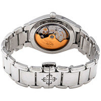 Stainless steel case with a stainless steel bracelet. Fixed stainless steel bezel set with 160 diamonds (~0.77 ct). Blue sunburst dial with luminous silver-tone baton-style hands and Arabic numeral hour markers. Minute markers around the outer rim. Dial Type: Analog. Luminescent hands and markers. Date display at the 6 o'clock position. Patek Philippe calibre 324 S C automatic movement, containing 29 Jewels, composed of 213 parts, bitting at 28800 vph, and has a power reserve of approximately 45 hours. Scratch resistant sapphire crystal. Transparent case back. Round case shape. Case size: 36 mm. Case thickness: 10.05 mm. Fold over clasp with a push button release. Water resistant at 30 meters / 100 feet. Functions: date, hour, minute, second. Luxury watch style. Watch label: Swiss Made. Patek Philippe Twenty 4 Automatic Blue Sunburst Dial Diamond Ladies Watch 7300/1200A-001. INFORMATION Brand: Patek Philippe Series: Twenty 4 Collection Name: Twenty 4 Gender: Womens Model: 7300/1200A-001 Watch Label: Swiss Made Movement: Automatic Engine: Patek Philippe Calibre 324 S C Power Reserve: 35-45 hours CASE Case Size: 36 mm Case Thickness: 10.05 mm Case Material: Stainless Steel Case Shape: Round Case Back: Transparent BAND Band Material: Stainless Steel Band Type: Bracelet Band Color: Silver-tone Clasp: Fold Over with Push Button Release DIAL Dial Color: Blue Sunburst Type: Analog Crystal: Scratch Resistant Sapphire Hands: Luminous Silver-tone Baton-style Dial Markers: Arabic Numeral Second Markers: Minute Markers around the outer rim Luminiscence: Hands and Markers Bezel: Fixed Bezel Color: Silver-tone Bezel Material: Stainless Steel set with 160 Diamonds (~0.77 ct.) FEATURES Water Resistance: 30 meters / 100 feet Calendar: Date display at the 6 o'clock position Functions: Date, Hour, Minute, Second Watch Features: Diamond, Stainless Steel, Analog ADDITIONAL INFO Watch Style: Luxury Warranty: 2 Year Jomashop Warranty Jomashop Sku: PK-7300-1200A-001 Department: Watches Category: Watches