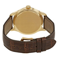 18kt yellow gold case with a black (alligator) leather strap. Fixed 18kt yellow gold bezel. Ivory dial with yellow gold-tone dauphine-style hands and index hour markers. Minute markers around the outer rim. Dial Type: Analog. Date display at the 3 o'clock position. Patek Philippe Calibre 324 S C Automatic movement, containing 29 Jewels, composed of 213 parts, bitting at 28800 vph, and has a power reserve of approximately 45 hours. Scratch resistant sapphire crystal. Pull / push crown. Sapphire crystal protected by an invisibly-hinged dust cover case back. Round case shape, case size: 39 mm. Tang clasp. Water resistant at 30 meters / 100 feet. Functions: date, hour, minute, second. Calatrava Series. Luxury watch style. Watch label: Swiss Made. Pre-owned Patek Philippe Calatrava Ivory Dial 18kt Yellow Gold Brown Leather Men's Watch 5227J-001. GENERAL Collection Name: Calatrava INFORMATION Brand: Patek Philippe Series: Calatrava Model: 5227J-001 Gender: Mens Watch Label: Swiss Made Movement: Automatic Engine: Patek Philippe Calibre 324 S C Power Reserve: 35-45 hours CONDITION INFORMATION Box: No Papers: Yes Year: No year CASE Case Diameter: 39 Case Material: 18kt Yellow Gold Case Shape: Round Case Back: Sapphire Crystal protected by an invisibly-hinged Dust Cover DIAL Type: Analog Dial Color: Ivory Crystal: Scratch Resistant Sapphire Hands: Yellow Gold-tone Dauphine-style Second Markers: Minute Markers around the outer rim Dial Markers: Index Bezel: Fixed Bezel Material: 18kt Yellow Gold Crown: Pull / Push BAND Band Type: Strap Band Material: (Alligator) Leather Band Color: Black Clasp: Tang FEATURES Water Resistance: 30 meters / 100 feet Calendar: Date display at the 3 o'clock position Functions: Date, Hour, Minute, Second Watch Features: Alligator Leather, Analog, Gold, Leather ADDITIONAL INFO Watch Style: Luxury Warranty: 2 Year Jomashop Warranty Jomashop Sku: PRE-PK-5227J-001 Department: Watches