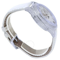 Diamond set 18kt white gold case with a white leather strap. Fixed bezel with diamond set 18kt white gold. Mother of pearl dial with silver-tone hands and Arabic numeral hour markers. Minute markers around the outer rim. Dial Type: Analog. Luminescent hands. Date display at the 6 o'clock position. Three sub-dials displaying: day of the week, month and moonphase. Patek Philippe Calibre 324 S QA LU Automatic movement, containing 34 Jewels, composed of 328 parts, bitting at 28800 vph, and has a power reserve of approximately 45 hours. Scratch resistant sapphire crystal. Transparent see through case back. Round case shape, case size: 37 mm. Buckle clasp. Water resistant at 30 meters / 100 feet. Functions: annual calendar, moon phase, month, date, day, hour, minute, second. Complications Annual Calendar Series. Dress watch style. Watch label: Swiss Made. Item Variations: 4937G. Pre-owned Patek Philippe Complications Annual Calendar Automatic Moon Phase Diamond Ladies Watch 4937G-001. GENERAL Collection Name: Complications Annual Calendar INFORMATION Brand: Patek Philippe Series: Complications Annual Calendar Model: 4937G-001 Gender: Womens Watch Label: Swiss Made Movement: Automatic Engine: Patek Philippe Calibre 324 S QA LU Power Reserve: 45 hours CONDITION INFORMATION Box: No Preowned Item Condition: Very Good Papers: No CASE Case Size: 37 Case Material: Diamond Set 18kt White Gold Case Shape: Round Case Back: Transparent See Through DIAL Type: Analog Dial Color: Mother of Pearl Crystal: Scratch Resistant Sapphire Hands: Silver-tone Second Markers: Minute Markers around the outer rim Dial Markers: Arabic Numeral Sub Dials: Three - Day of The Week, Month and Moonphase Luminiscence: Hands Bezel: Fixed Bezel Material: Diamond Set 18kt White Gold BAND Band Type: Strap Band Material: Leather Band Color: White Clasp: Buckle FEATURES Water Resistance: 30 meters / 100 feet Calendar: Date display at the 6 o'clock position Functions: Annual Calendar, Moon Phase, Month, Date, Day, Hour, Minute, Second Watch Features: Analog, Annual Calendar, Month, Gold, Leather, Moon Phase, Diamond ADDITIONAL INFO Watch Style: Dress Warranty: 1 Year Jomashop Warranty Jomashop Sku: PRE-P-PK-96330 Item Variation: 4937G Department: Watches