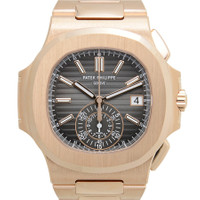 Pre-owned 18kt rose gold case with a 18kt rose gold bracelet. Fixed 18kt rose gold bezel. Black dial with luminous hands and index hour markers. Minute markers around the outer rim. Dial Type: Analog. Luminescent hands and markers. Date display at the 3 o'clock position. One subdial displaying: 12 hour/60 minute. Patek Philippe Calibre CH 28-520 C Automatic movement, containing 35 Jewels, composed of 327 parts, bitting at 28800 vph, and has a power reserve of approximately 55 hours. Scratch resistant sapphire crystal. Screw down crown. Transparent case back. Round case shape, case size: 40.5 mm. Butterfly clasp. Water resistant at 120 meters / 400 feet. Functions: chronograph, date, hour, minute, second. Nautilus Series. Luxury watch style. Watch label: Swiss Made. Item Variations: 5980 1R 001, 5980.1R.001, 59801R001. Patek Philippe Nautilus Black Dial 18kt Rose Gold Chronograph Automatic Men's Watch 5980-1R-001. GENERAL Preowned Item Condition: Unworn / Like New CASE Case Material: 18kt Rose Gold Case Shape: Cushion Case Back: Transparent BAND Band Material: 18kt Rose Gold Band Type: Bracelet Clasp: Butterfly DIAL Dial Color: Black Type: Analog Crystal: Scratch Resistant Sapphire Hands: Luminous Dial Markers: Index Second Markers: Minute Markers around the outer rim Sub Dials: One - 12 Hour/60 Minute Luminiscence: Hands and Markers Bezel: Fixed Bezel Material: 18kt Rose Gold Crown: Screw Down INFORMATION Brand: Patek Philippe Series: Nautilus Collection Name: Nautilus Gender: Mens Model: 5980-1R-001 Watch Label: Swiss Made Movement: Automatic Engine: Patek Philippe Calibre CH 28-520 C Power Reserve: 45-55 hours FEATURES Water Resistance: 120 meters / 400 feet Calendar: Date display at the 3 o'clock position Functions: Chronograph, Date, Hour, Minute, Second Watch Features: Chronograph, Gold, Analog ADDITIONAL INFO Watch Style: Luxury Warranty: 1 Year Jomashop Warranty Jomashop Sku: PRE-P-PK-104886 Department: Watches Category: Watches