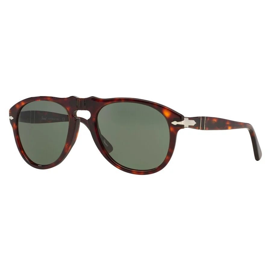 Persol Sunglasses. Series number: PO0649. Color code: 24/31. Shape: Pilot. Lens Width: 52 mm. Lens Bridge: 20 mm. Arm Length: 140 mm. 100% UV protection. Non-Polarized. Frame Material: Acetate. Frame Color: Havana. Lenses Type: Green. Rim Style: Full-Rim. Handmade in Italy. UPC/EAN code: 713132003336. Persol Green Pilot Men's Sunglasses PO0649 24/31 52. Manufacturer's Packaging Included. Packaging Size And Color May Vary. DETAILS Lens Width (mm): 52 Arm Length (mm): 140 mm Lens Bridge (mm): 20 Series Number: PO0649 Frame Color: Havana Color Code: 24/31 Lens: Green UV Protection: 100% UV Protection Rim Style: Full-Rim Frame Shape: Pilot Frame Material: Acetate GENERAL Size: 52 mm Collection Name: PO0649 INFORMATION Brand: Persol Gender: Mens Model: PO0649 24/31 52 ADDITIONAL INFO UPC Code: 713132003336 Jomashop Sku: Z-P57VK Department: Sunglasses