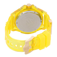 Transparent yellow resin case with a transparent yellow silicone strap. Fixed transparent yellow resin bezel. Black dial with gold-tone hands and index hour markers. Minute markers around the outer rim. Dial Type: Analog. Quartz movement. Scratch resistant mineral crystal. Pull / push crown. Solid case back. Round case shape, case size: 44 mm, case thickness: 14 mm. Tang clasp. Water resistant at 50 meters / 165 feet. Functions: hour, minute, second. The Skull Series. Sport watch style. Philipp Plein The Skull Quartz Black Dial Men's Watch PWWAA0123. INFORMATION Brand: Philipp Plein Series: The Skull Collection Name: The Skull Gender: Mens Model: PWWAA0123 Movement: Quartz CASE Case Size: 44 mm Case Thickness: 14 mm Case Material: Resin Case Shape: Round Case Back: Solid BAND Band Material: Silicone Band Type: Strap Band Color: Transparent Yellow Clasp: Tang DIAL Dial Color: Black Type: Analog Crystal: Scratch Resistant Mineral Hands: Gold-tone Dial Markers: Index Second Markers: Minute Markers around the outer rim Bezel: Fixed Bezel Color: Transparent Yellow Bezel Material: Resin Crown: Pull / Push FEATURES Water Resistance: 50 meters / 165 feet Functions: Hour, Minute, Second Watch Features: Gold, Analog ADDITIONAL INFO Watch Style: Sport UPC Code: 7630615129921 Jomashop Sku: Z-RPL6Y Department: Watches