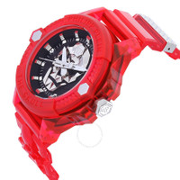 Red transparent resin case with a red transparent silicone strap. Fixed red transparent resin bezel. Black dial with silver-tone hands and index hour markers. Minute markers around the outer rim. Dial Type: Analog. Quartz movement. Scratch resistant mineral crystal. Pull / push crown. Solid case back. Round case shape, case size: 44 mm, case thickness: 14 mm. Tang clasp. Water resistant at 50 meters / 165 feet. Functions: hour, minute, second. The Skull Series. Sport watch style. Philipp Plein The Skull Quartz Black Dial Men's Watch PWWAA0223. INFORMATION Brand: Philipp Plein Series: The Skull Collection Name: The Skull Gender: Mens Model: PWWAA0223 Movement: Quartz CASE Case Size: 44 mm Case Thickness: 14 mm Case Material: Resin Case Shape: Round Case Back: Solid BAND Band Material: Silicone Band Type: Strap Band Color: Red Transparent Band Width: 24 mm Clasp: Tang DIAL Dial Color: Black Type: Analog Crystal: Scratch Resistant Mineral Hands: Silver-tone Dial Markers: Index Second Markers: Minute Markers around the outer rim Bezel: Fixed Bezel Color: Red Transparent Bezel Material: Resin Crown: Pull / Push FEATURES Water Resistance: 50 meters / 165 feet Functions: Hour, Minute, Second Watch Features: Analog ADDITIONAL INFO Watch Style: Sport UPC Code: 7630615129945 Jomashop Sku: Z-AJYX5 Department: Watches