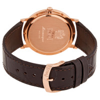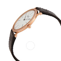 18kt rose gold case with a brown (alligator) leather strap. Fixed 18kt rose gold bezel set with 78 diamonds. White dial with index hour markers. Dial Type: Analog. Piaget Calibre 430P Hand Wind movement, containing 18 Jewels, composed of 131 parts, bitting at 21600 vph, and has a power reserve of approximately 43 hours. Scratch resistant sapphire crystal. Pull / push crown. Solid case back. Round case shape, case size: 38 mm, case thickness: 6.4 mm. Tang clasp. Water resistant at 30 meters / 100 feet. Functions: hour, minute. Altiplano Series. Luxury watch style. Watch label: Swiss Made. Item Variations: GOA36125, G0A36125, 36125. Piaget Altiplano White Dial Brown Alligator Leather Automatic Men's Watch GOA36125. CASE Case Size: 38 Case Thickness: 6.4 mm Case Material: 18kt Rose Gold Case Shape: Round Case Back: Solid BAND Band Material: (Alligator) Leather Band Type: Strap Band Color: Brown Clasp: Tang DIAL Dial Color: White Type: Analog Crystal: Scratch Resistant Sapphire Dial Markers: Index Bezel: Fixed Bezel Material: 18kt Rose Gold set with 78 Diamonds Crown: Pull / Push INFORMATION Brand: Piaget Series: Altiplano Collection Name: Altiplano Gender: Mens Model: G0A36125 Watch Label: Swiss Made Movement: Automatic Engine: Piaget Calibre 430P Power Reserve: 43 hours FEATURES Water Resistance: 30 meters / 100 feet Functions: Hour, Minute Watch Features: Diamond, Leather, Gold, Analog, Alligator Leather ADDITIONAL INFO Watch Style: Luxury Warranty: 2 Year Jomashop Warranty Jomashop Sku: PG-GOA36125 Item Variation: GOA36125, G0A36125, 36125 Department: Watches Category: Watches