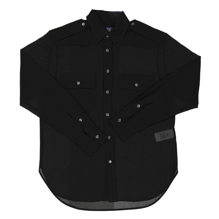 Polo Ralph Lauren Ladies Tops. Fashion category: Shirts & Blouses. SKU: 211792510001. Color: Black. Featuring a sheer construction, a pointed collar, a front button fastening, a front buttoned flap pockets, long sleeves, button cuffs, a back inverted pleat and a curved hem. GENERAL Color: Black INFORMATION Brand: Polo Ralph Lauren Gender: Womens Model: 211792510001 DETAILS Category: Tops Apparel Type: Shirts & Blouses ADDITIONAL INFO Jomashop Sku: -211792510001N Department: Apparel