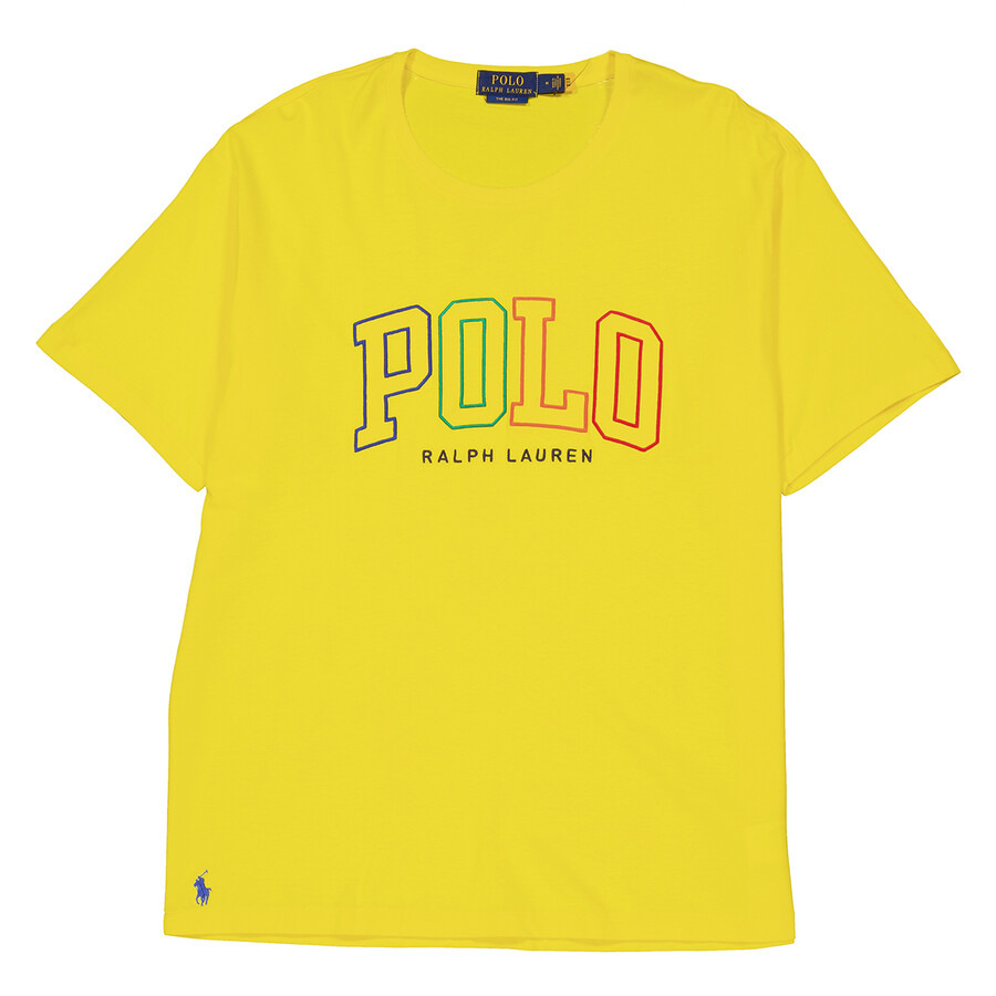 Polo Ralph Lauren Men's Tops. Fashion category: T-Shirts & Henleys. SKU: 710899185003. Color: Yellow. Polo Ralph Lauren Logo Cotton Jersey T-Shirt. This jersey t-shirt features a crew neck, short sleeves, a straig them, "Polo" and "Ralph Lauren" embroidery at the center front and Signature embroidered Pony at the right hem. 100% cotton. GENERAL Color: Yellow INFORMATION Brand: Polo Ralph Lauren Gender: Mens Model: 710899185003 DETAILS Category: Tops Apparel Type: T-Shirts & Henleys Material: Cotton ADDITIONAL INFO Jomashop Sku: -POLO710899185003 Department: Clothing