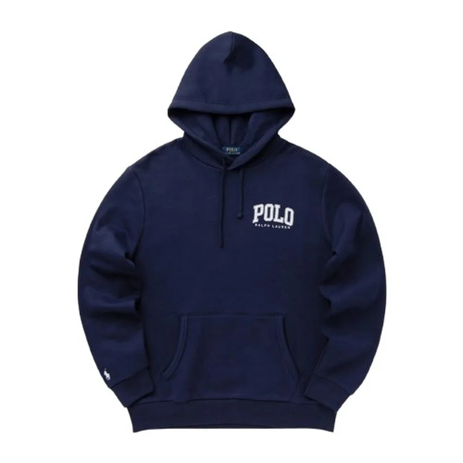 Polo Ralph Lauren Men's Tops. Fashion category: Hoodies & Sweatshirts. SKU: 710968708005. Color: Navy. Polo Ralph Lauren Men's Fleece Logo Print Sweatshirt. Crafted from a cotton blend, this hoodie showcases the signature embroidered Pony and a collegiate-style logo print. It features a drawstring hood, long sleeves with ribbed cuffs, a kangaroo pocket, and a ribbed hem for a comfortable, secure fit. The embroidered Pony is placed above the right cuff for a subtle branded detail. Material: 80% Cotton, 20% Polyester. GENERAL Color: Navy INFORMATION Brand: Polo Ralph Lauren Gender: Mens Model: 710968708005 DETAILS Category: Tops Apparel Type: Hoodies & Sweatshirts Material: Cotton, Polyester ADDITIONAL INFO Jomashop Sku: -710968708005N Department: Clothing