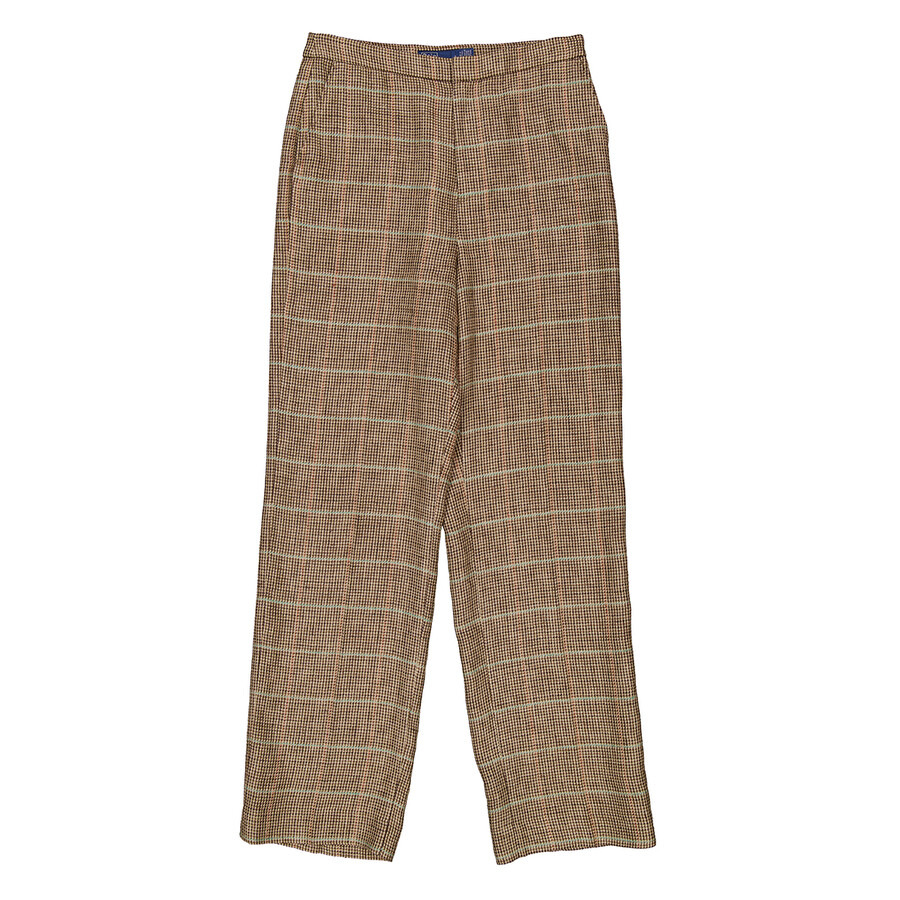 Polo Ralph Lauren Ladies Bottoms. Fashion category: Pants & Leggings. SKU: 211924797001. Color: Brown. Polo Ralph Lauren Straight-Leg Plaid Linen-Silk Trouser. Made from an Italian linen-and-silk blend, these high-rise trousers feature a sewn waist, a zip fly with a hook-and-bar closure, and a straight-leg silhouette. They are designed with front waist angled pockets, back besom pockets, back waist darts, and sharp creases running down the front and back of each leg. Outer: 80% linen, 20% silk. Lining: 100% viscose. Made in Portugal. GENERAL Color: Brown INFORMATION Brand: Polo Ralph Lauren Gender: Womens Model: 211924797001 DETAILS Category: Bottoms Apparel Type: Pants & Leggings Material: Linen, Silk ADDITIONAL INFO Jomashop Sku: -211924797001N Department: Clothing
