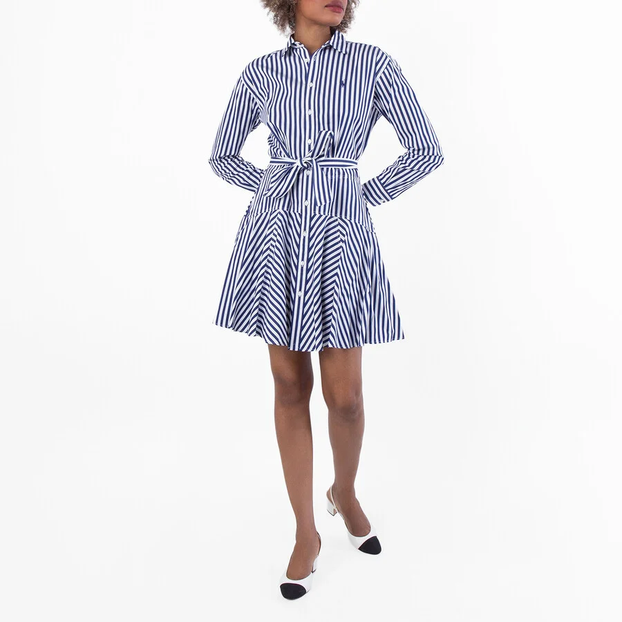 Polo Ralph Lauren Ladies Dresses. Fashion category: Casual Dresses. SKU: 211929600003. Color: 1323 Fall Royal/White. Polo Ralph Lauren Striped Paneled Cotton Shirt Dress. This striped paneled shirt dress is made from cotton and features a point collar, button closure, long sleeves with buttoned cuffs, and side pockets. The paneled skirt adds a flattering fit-and-flare silhouette, while the back yoke and removable self-belt provide additional styling options. Finished with the signature embroidered Pony at the chest. Material: 100% Cotton. INFORMATION Brand: Polo Ralph Lauren Series: __Null__Value__ Gender: Womens Model: 211929600003 DETAILS Category: Dresses Apparel Type: Casual Dresses Material: Cotton ADDITIONAL INFO Jomashop Sku: -211929600003N Department: Clothing