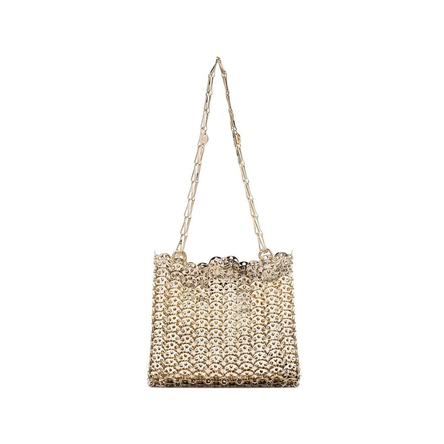 Paco Rabanne Ladies Shoulder Bag. SKU: 19ESS0007MET002_P711. Color: Gold. Paco Rabanne 1969 Shoulder Bag. 100% Brass. GENERAL Brand Type: Designer Color: Gold INFORMATION Brand: Paco Rabanne Gender: Womens Model: 19ESS0007MET002_P711 ADDITIONAL INFO UPC Code: 3349660600128 Jomashop Sku: Z-Q3PKR Department: Bags Category: Shoulder Bag