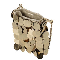Paco Rabanne Ladies Shoulder Bag. SKU: 20ESS0137PLX013-LIGHT GOLD. Color: Light Gold. Size: L 6.30" X H 3.94" X W 0.79". Paco Rabanne Adjustable Metal Shoulder Strap Bag. This bag is crafted from large golden circular discs, expertly assembled with Paco Rabanne’s signature savoir-faire. It features a single internal compartment, magnetic closure, brass metal inserts with a gold finish, and a removable, adjustable shoulder strap for versatile wear. GENERAL Size Info: L 6.30" X H 3.94" X W 0.79" Brand Type: Designer Color: Light Gold INFORMATION Brand: Paco Rabanne Gender: Womens Model: 20ESS0137PLX013-LIGHT GOLD ADDITIONAL INFO UPC Code: 3349660716317 Jomashop Sku: Z-5XVBE Department: Bags Category: Shoulder Bag
